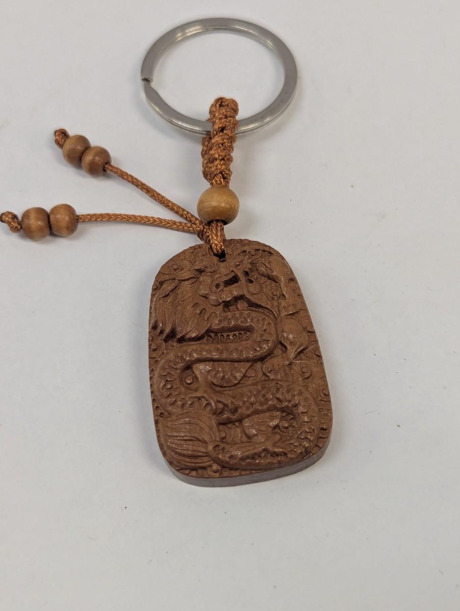 Yishui Wooden Dragon Keychain Feng Shui Lucky Charm Pendant