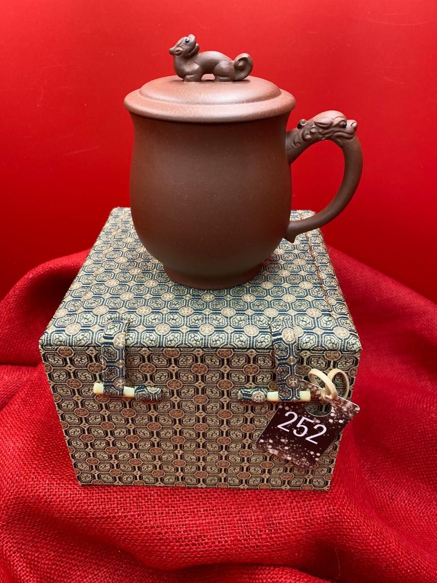 Chinese teapot made from Yixing stoneware known for its properties that enhance the aroma and flavor of tea.