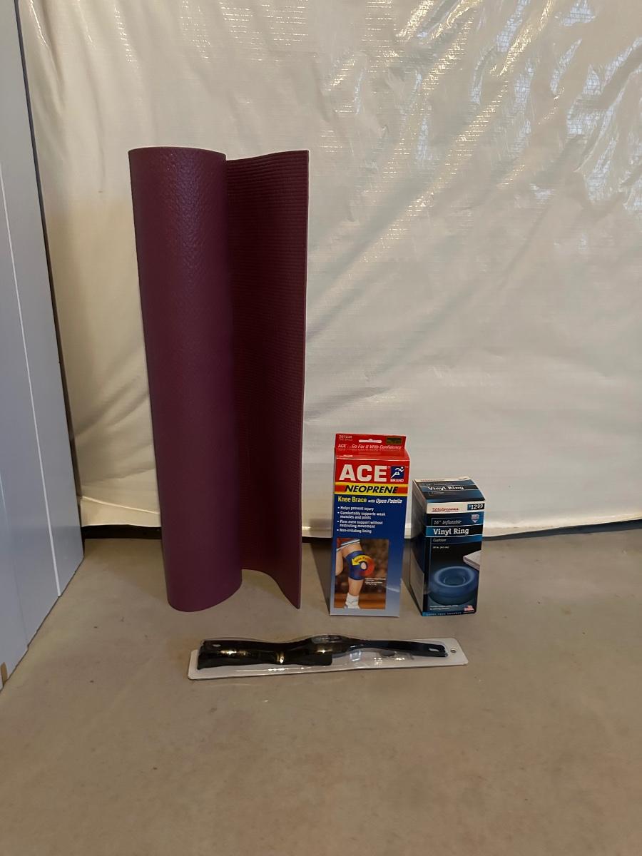 YOGA MAT, KNEE BRACE, TOILET CUSHION AND HEART RATE MONITOR