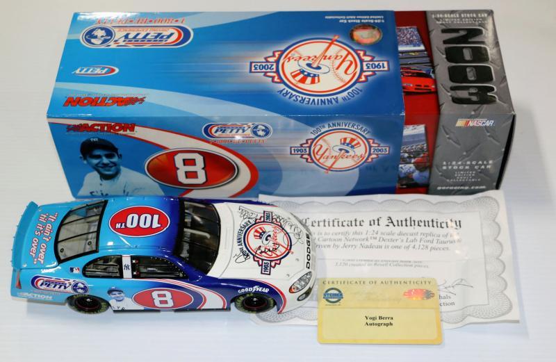RARE Collector's Item - Limited Edition 100-Years Anniversary 2003 Nascar Die Cast Car autographed by Yogi Berra and also autographed by Nascar driver - MINT in original boxes with Certificates of Authenticity - as seen on pictures.