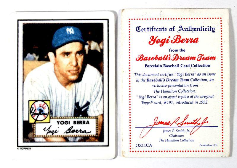 YOGI BERRA Baseball Dream Team Collection Porcelain Baseball Card w/ Stand & COA