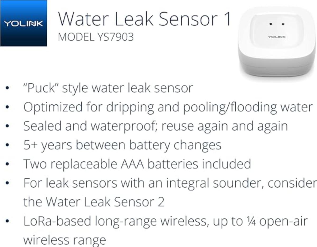 YoLink Water Leak Detector, 1/4 Mile World's Longest Range, Wireless Smart Water Leak Sensor, Alexa, IFTTT, Hub Required