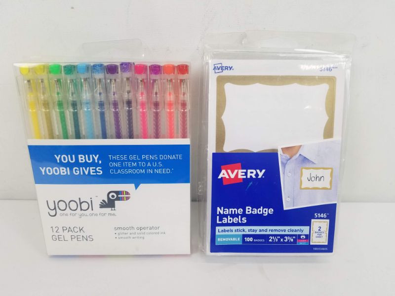 Yoobi Gel Pens Qty 12 & Package of Name Badge Labels (qty 100) - New