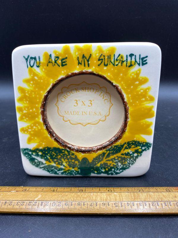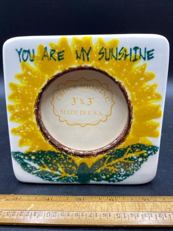 Ceramic You are my Sunshine picture frame. Small square frame with a sunflower image.