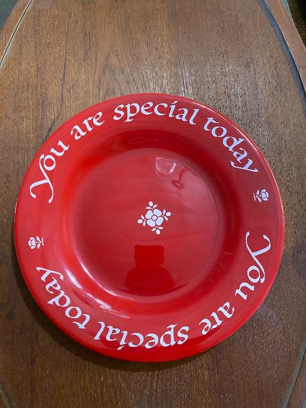 “You Are Special Today” The Original Red Plate. No two are the same. Great condition, has original sticker tag.