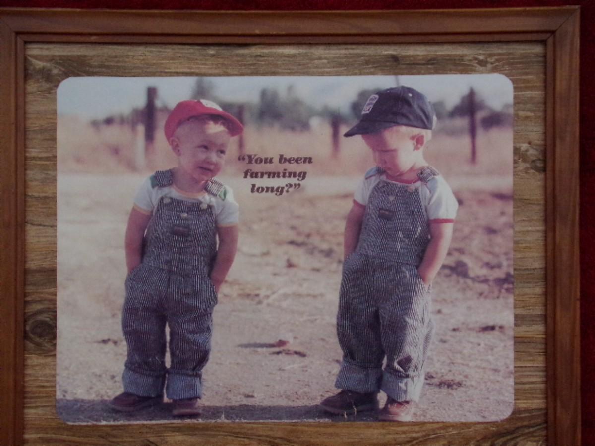 “You been farming long?” wall decor. About 22"x18" including frame.