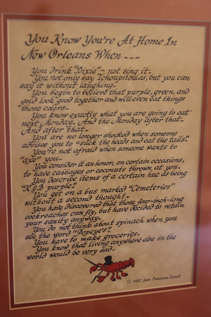 You Know You're At Home In New Orleans When ...  - Jean Patterson, 1982