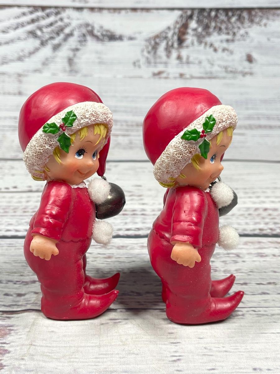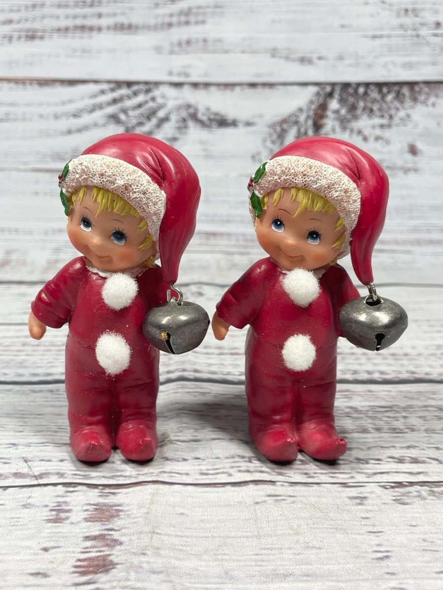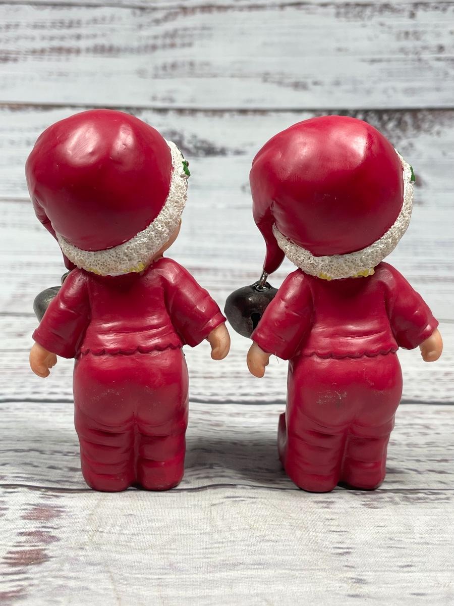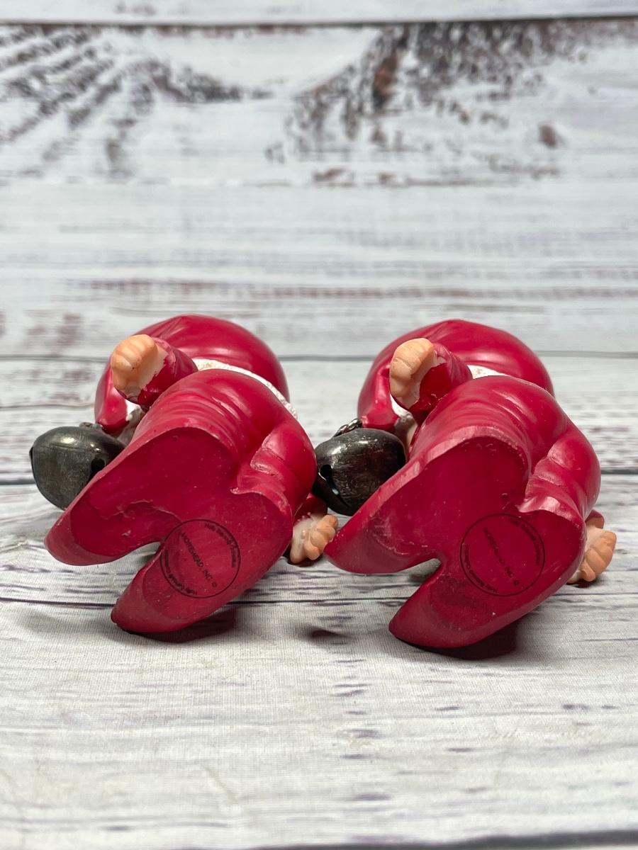 Both items are in great condition. There are bells attached to both of their Santa hats. Both figures are approximately 4” tall.