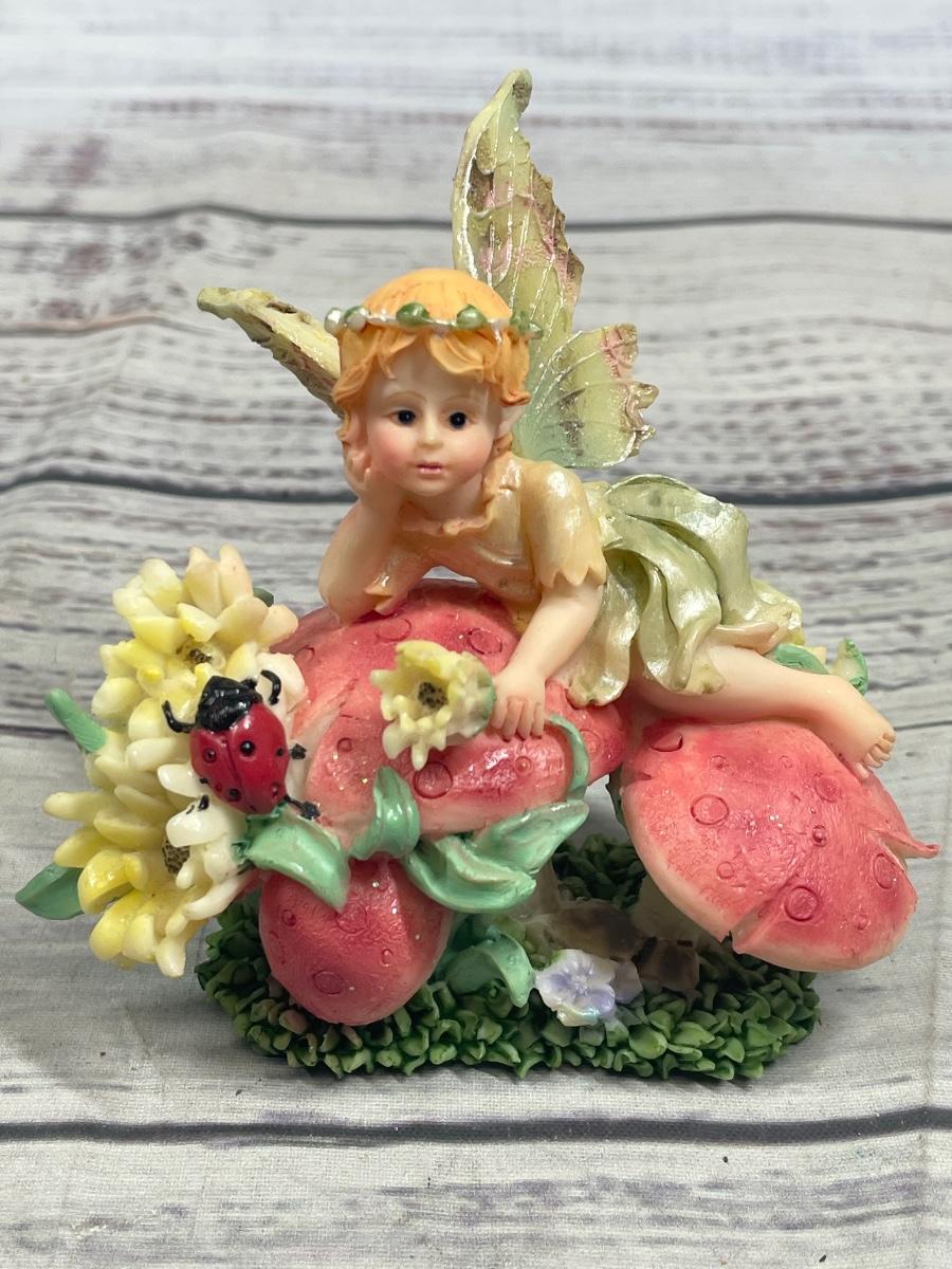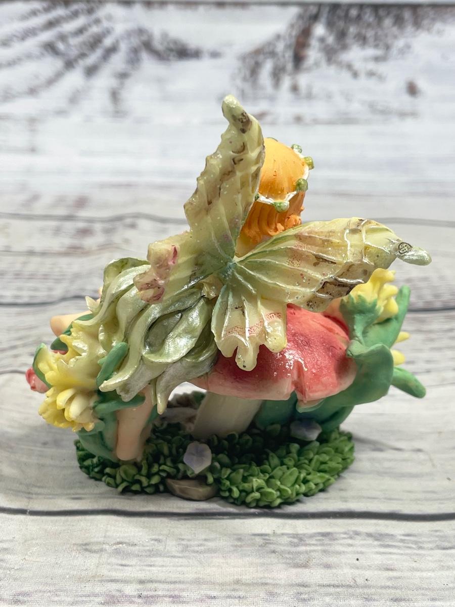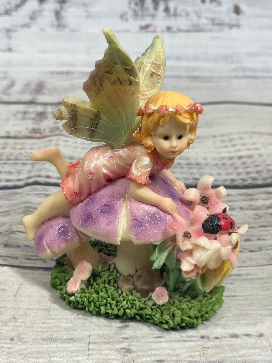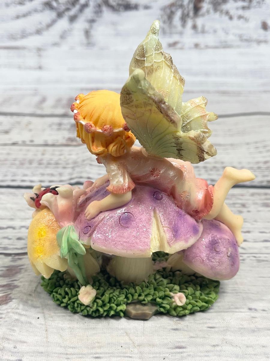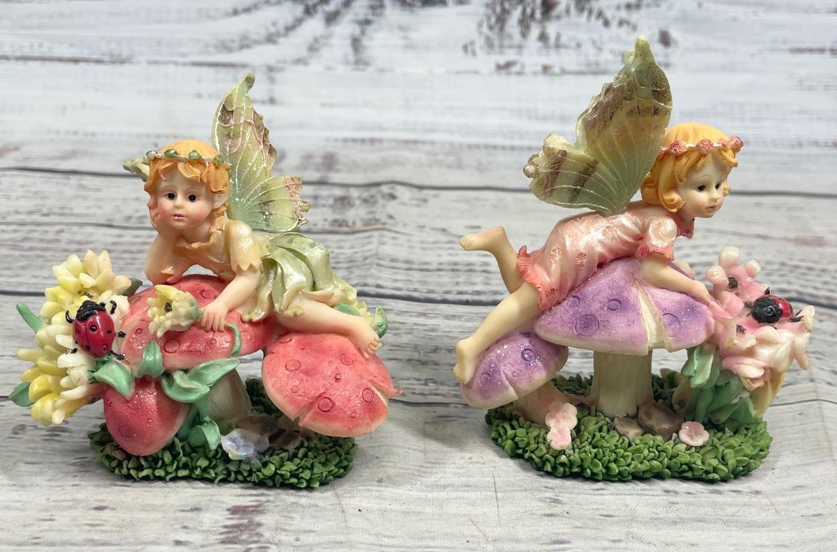 Young Fairy Girl Sitting on Mushrooms Figurine Statue Set of Two
