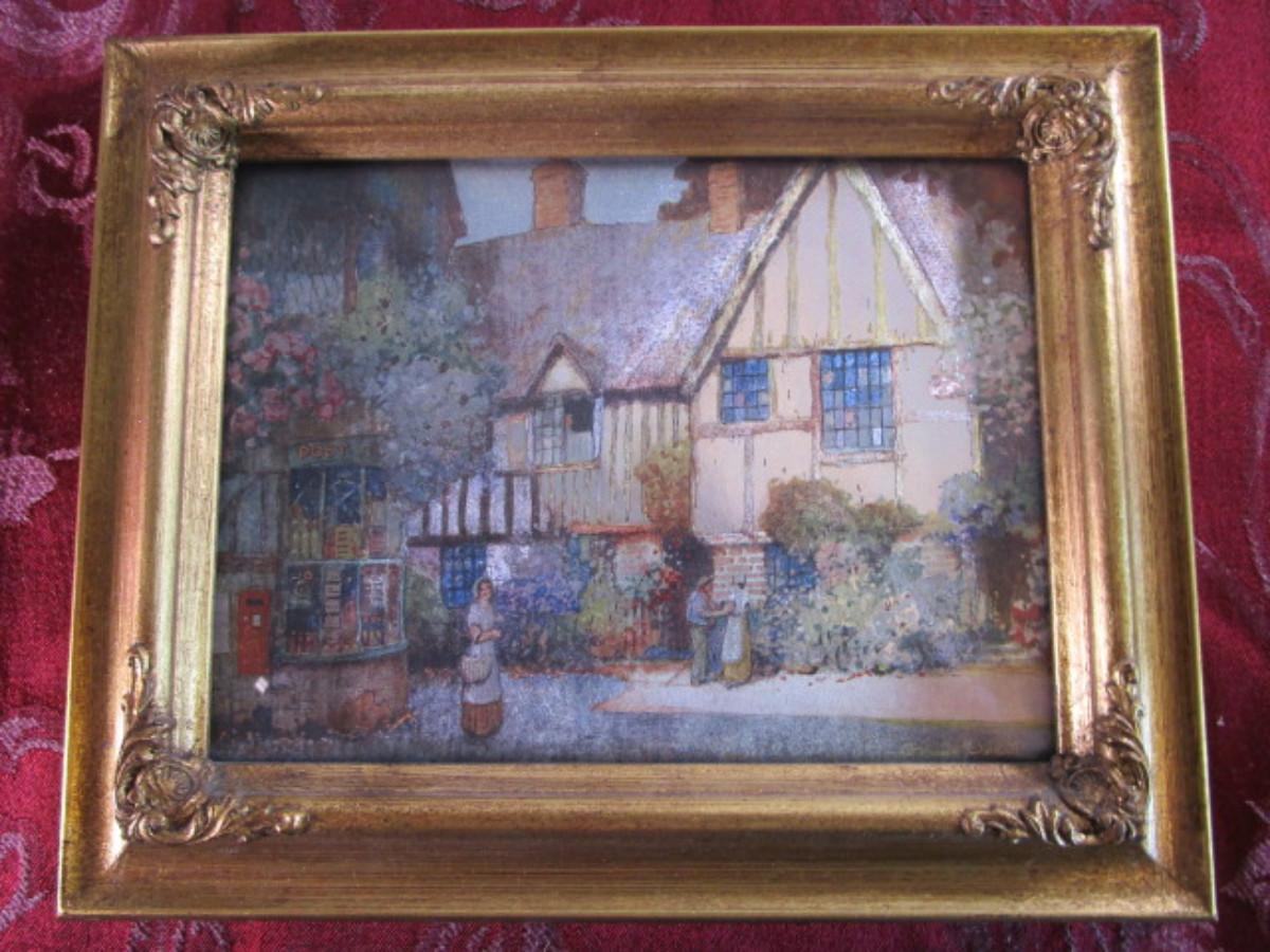 Young lady shopping foil picture with gold colored frame