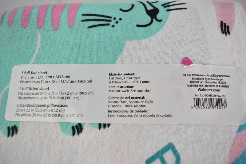 Your Zone 155 GSM Flannel Sheet Set, Purr Cat. Full Size, $18 Retail - New