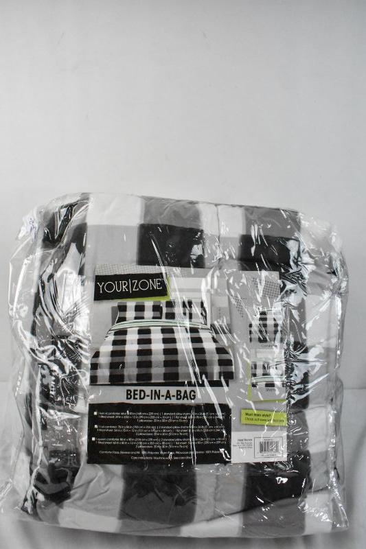 Your Zone Bed In A Bag Full Comforter, Black/White/Aqua Plaid - New
