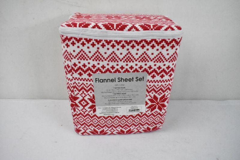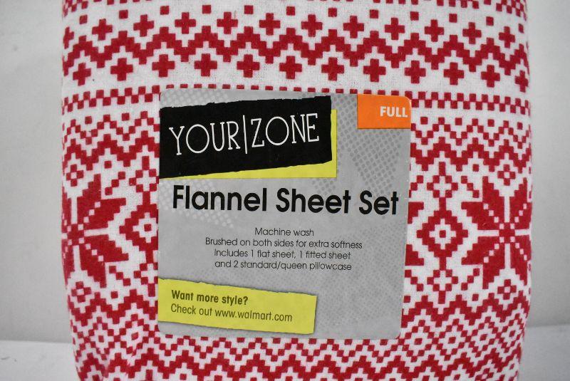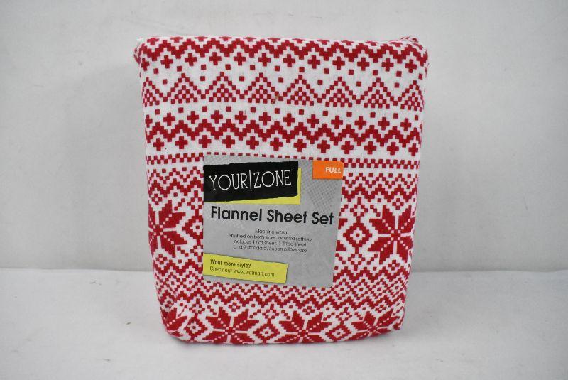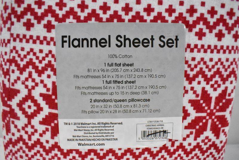Your Zone Full Flannel Sheet Set Christmas Pattern: 1 Flat Sheet, 1 Fitted Sheet, and 2 Standard Pillowcases - New