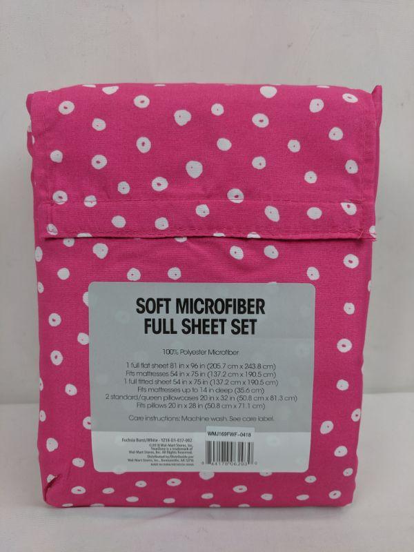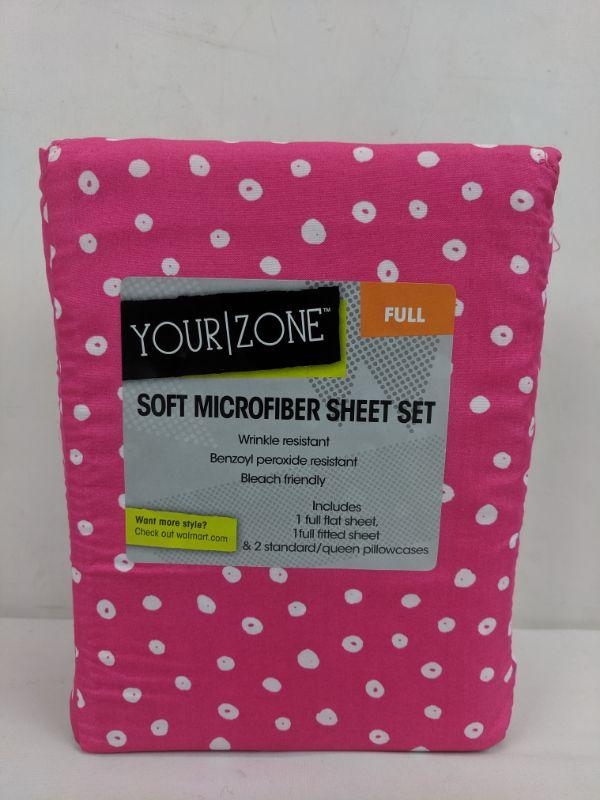 Your Zone Microfiber Sheet Set, Full, Pink/Dots - New