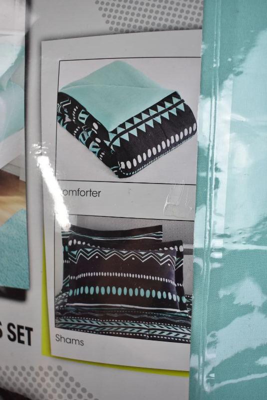 Your Zone Mint Grey Tribal Comforter Set, Full/Queen, 3 pcs, $29 Retail - New