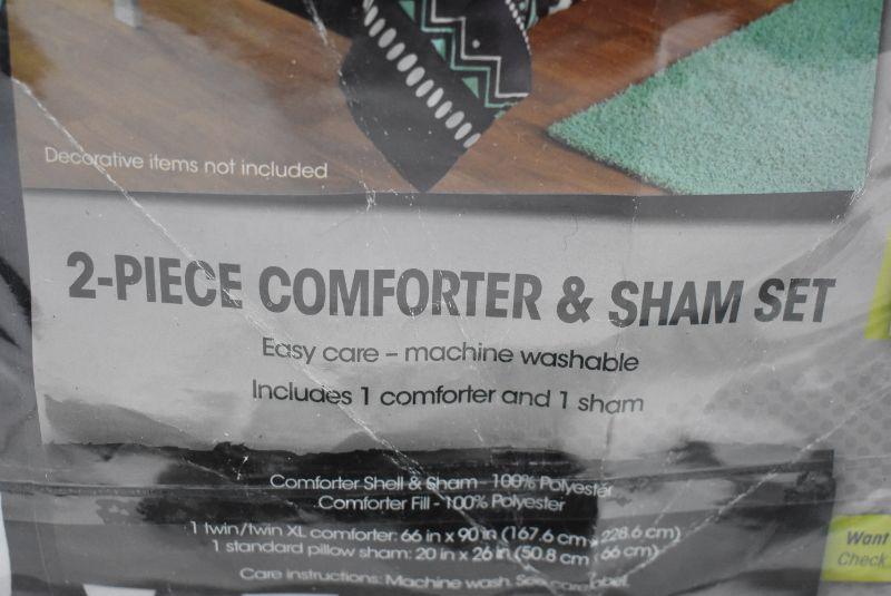 Your Zone Mint Grey Tribal Comforter Set, Twin/Twin XL - New