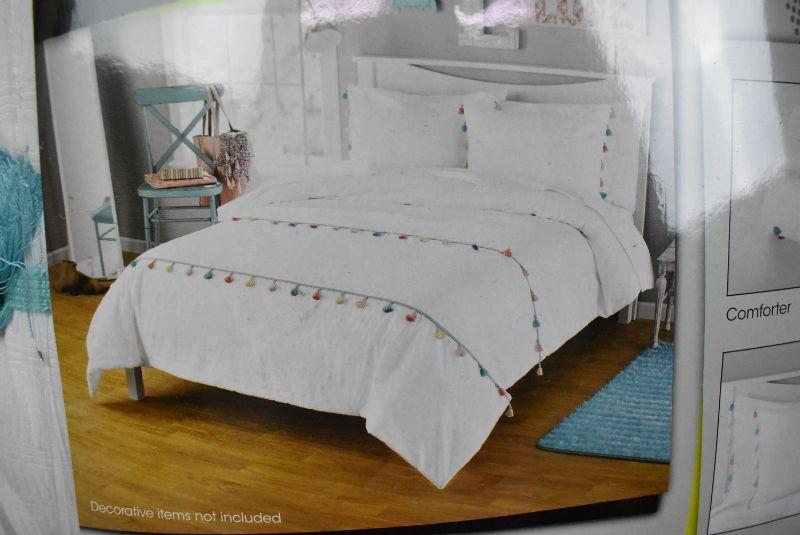 Your Zone Seersucker Tassel Comforter and Sham Set. Complete