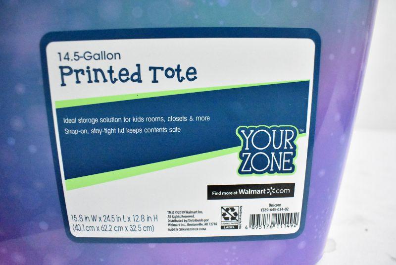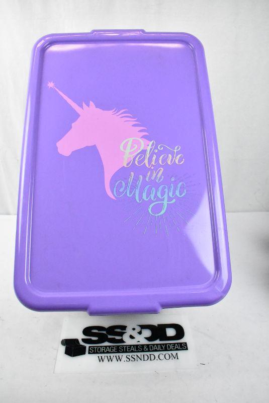 Your Zone Tote Box Toy Storage 14 Gallon Bin, Unicorn. Small Scratches on Lid