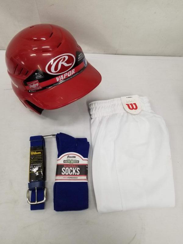 Youth Baseball Lot: Batting Helmet, Belt, Socks, and Pants - New