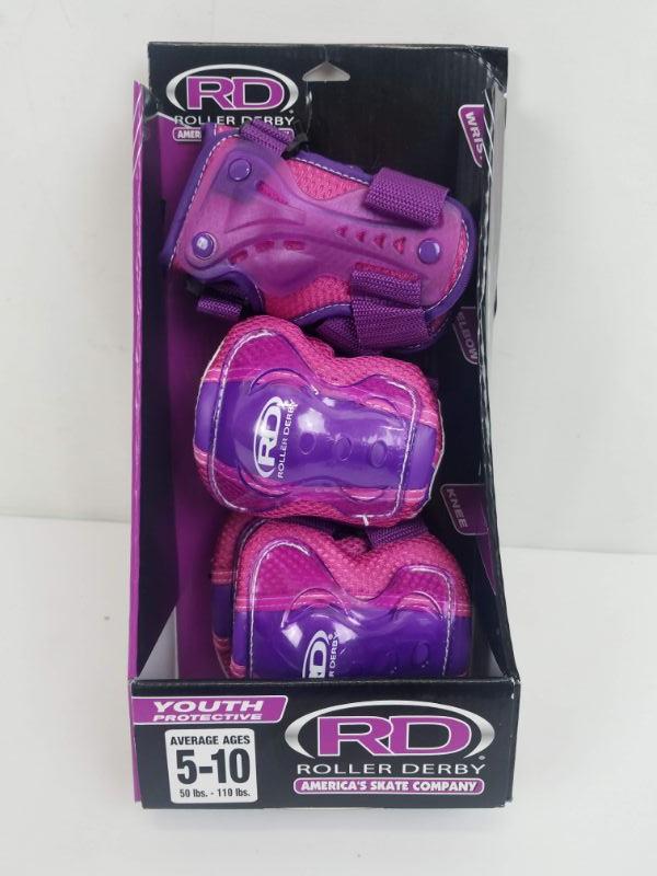Youth Protective Roller Derby Gear for ages 5-10, Purple & Pink - New