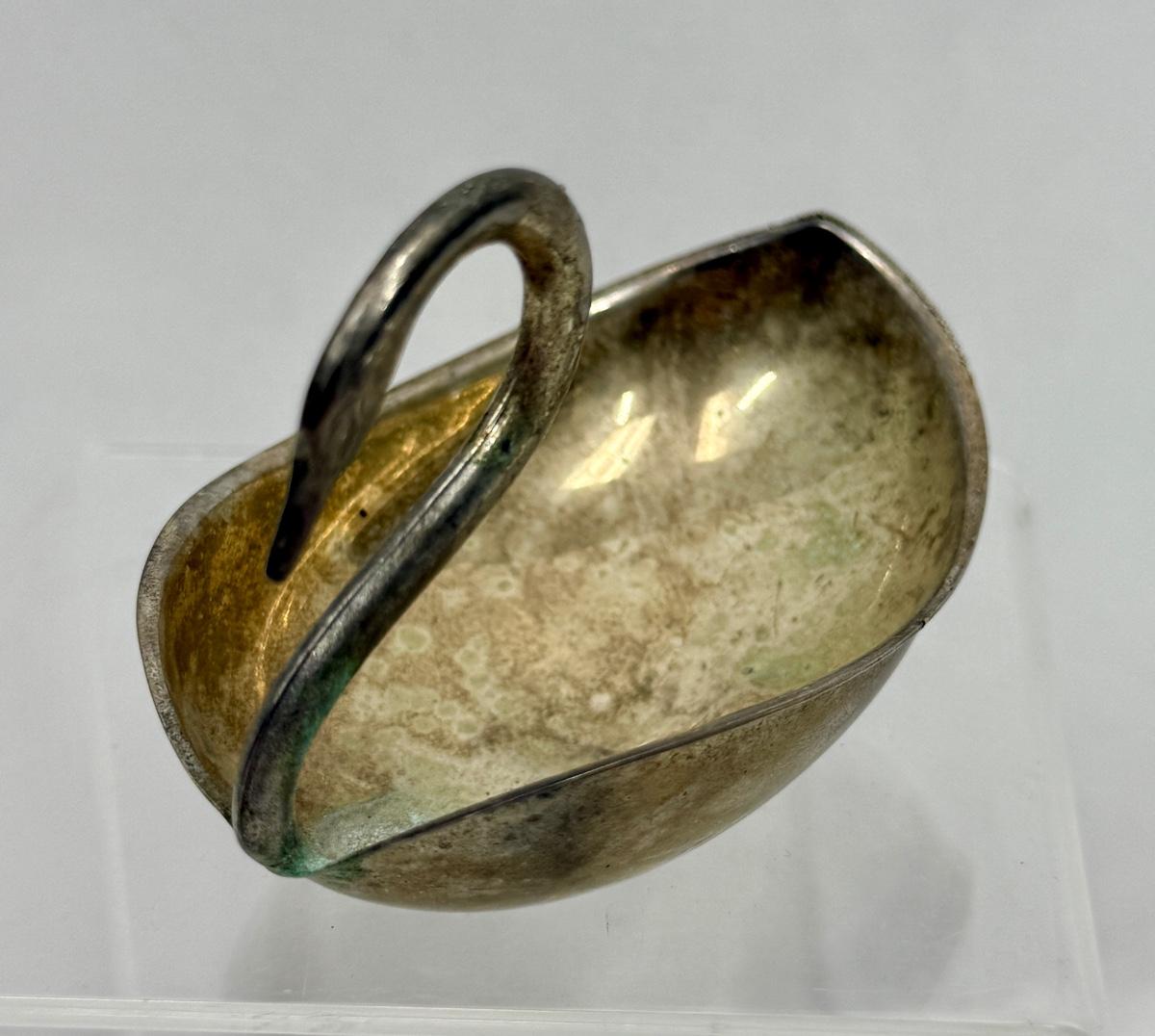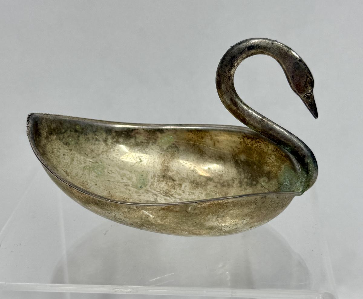 Very Rare small elegant swan bowl, can be used for jewelry as well as in the kitchen. Stamped OLRI within an oval on the inside middle. OLRI was a company created by Italian silversmith Rino Greggio Argenterie in the 1960s.