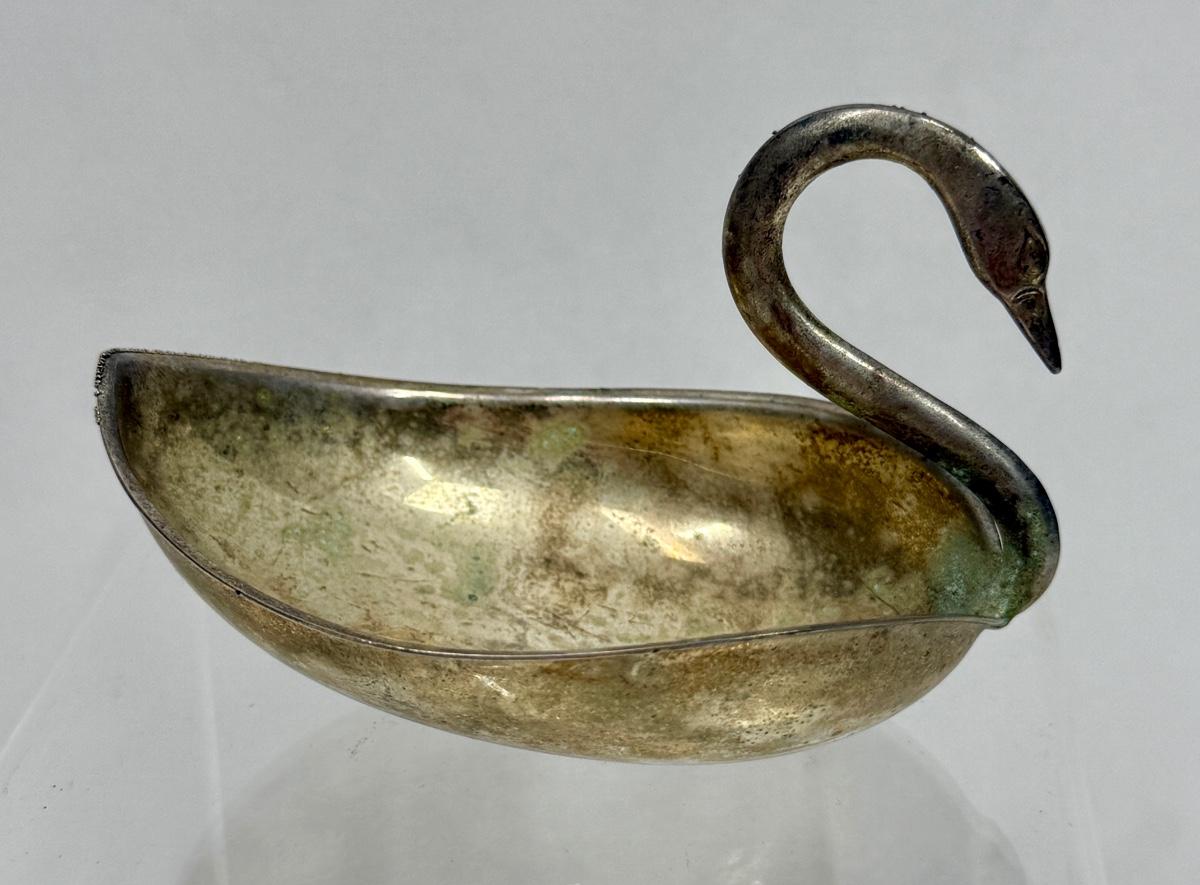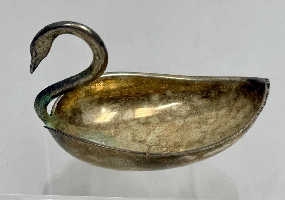 RARE Vintage ORLI Marked Silverplate Metal Swan Bowl