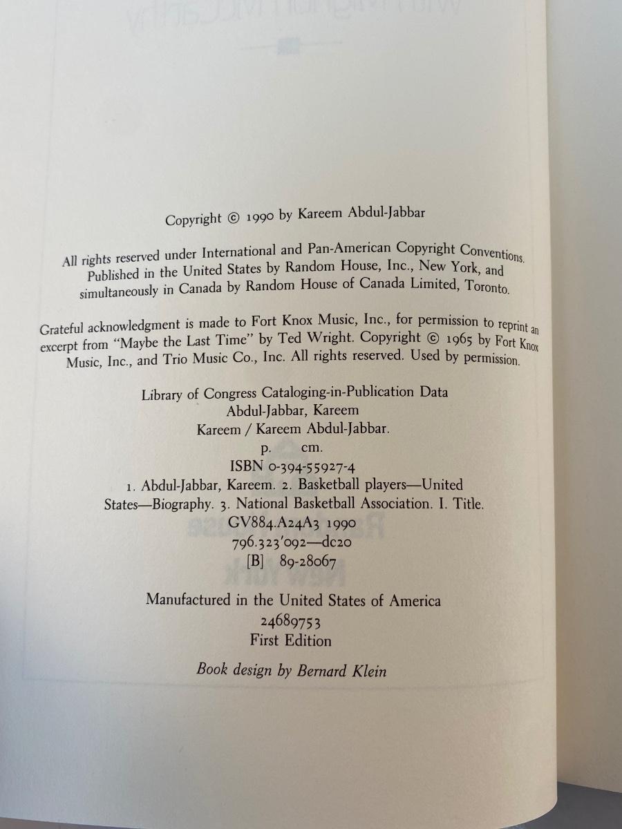 Kareem by Kareem Abdul-Jabbar Biography Book Los Angeles Lakers. In good condition. Copyright 1990.