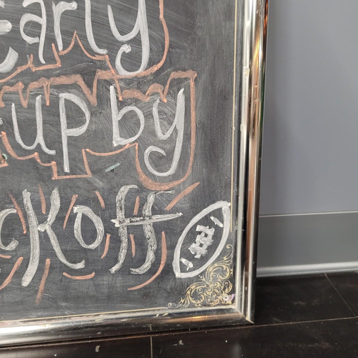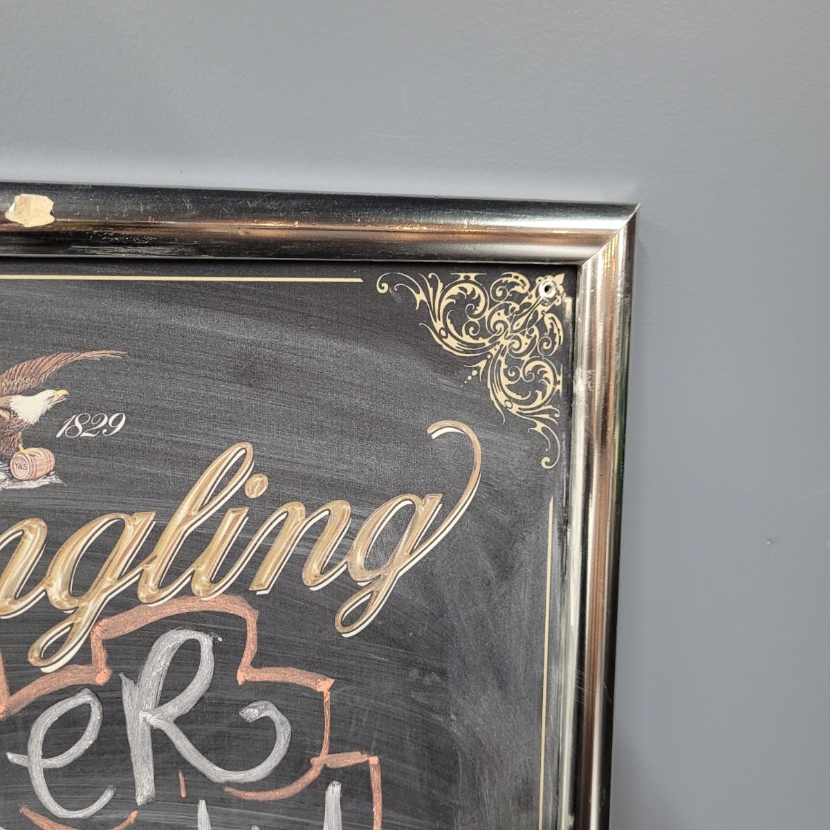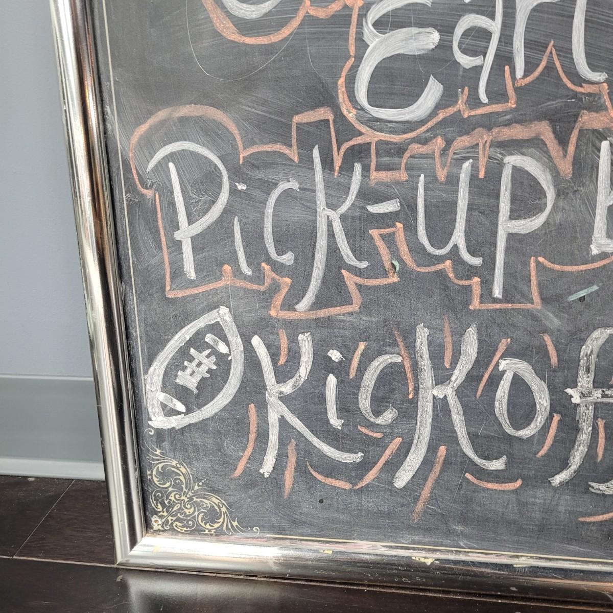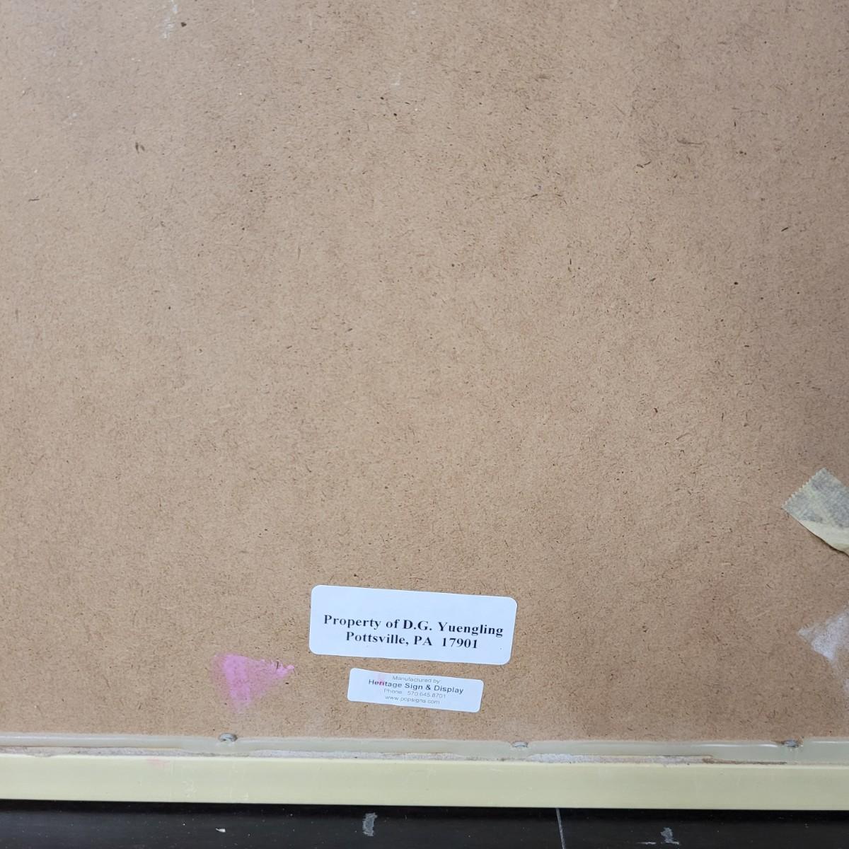 Yuengling beer framed chalkboard sign. Scuffs throughout frame, most notably at top (see pictures). Measures approximately 20" x26". Shipping available. Shipping Art can be costly please call UPS store at 828-252-6930 for quote.