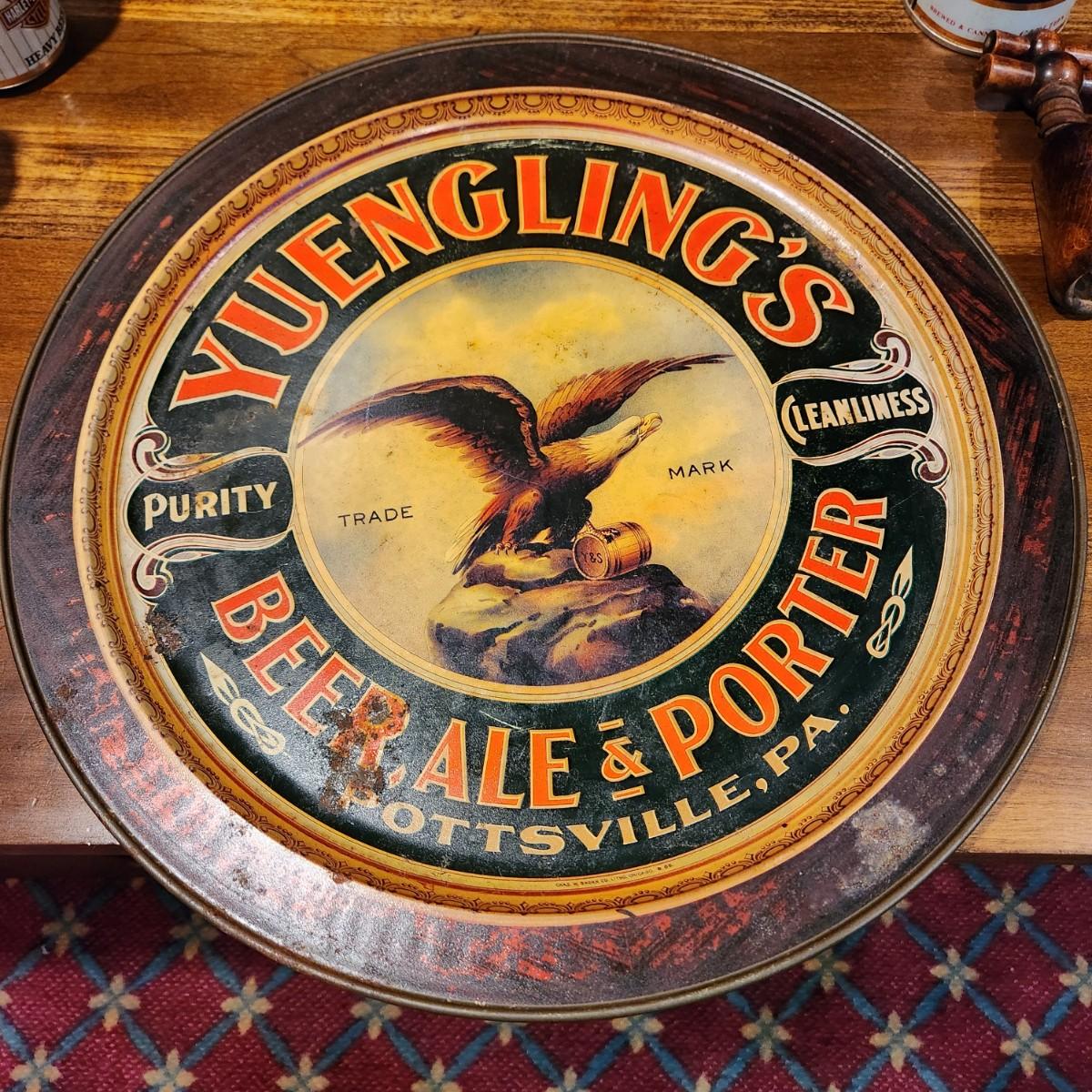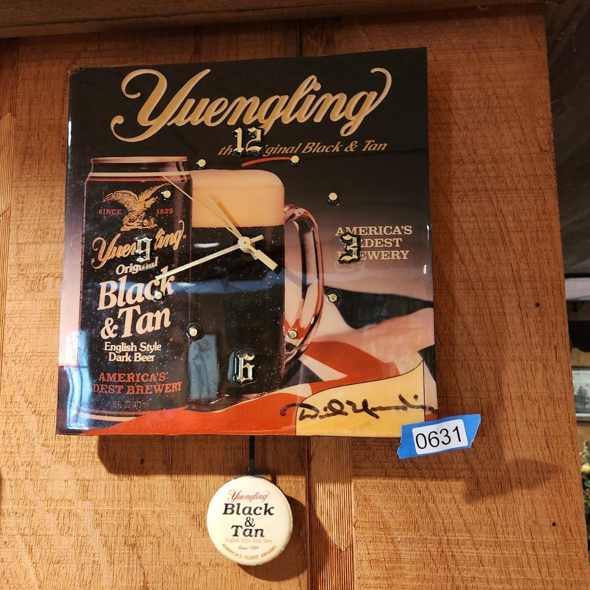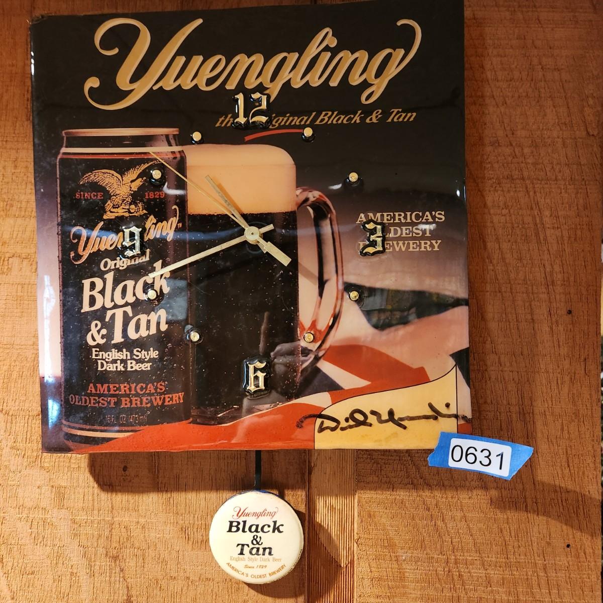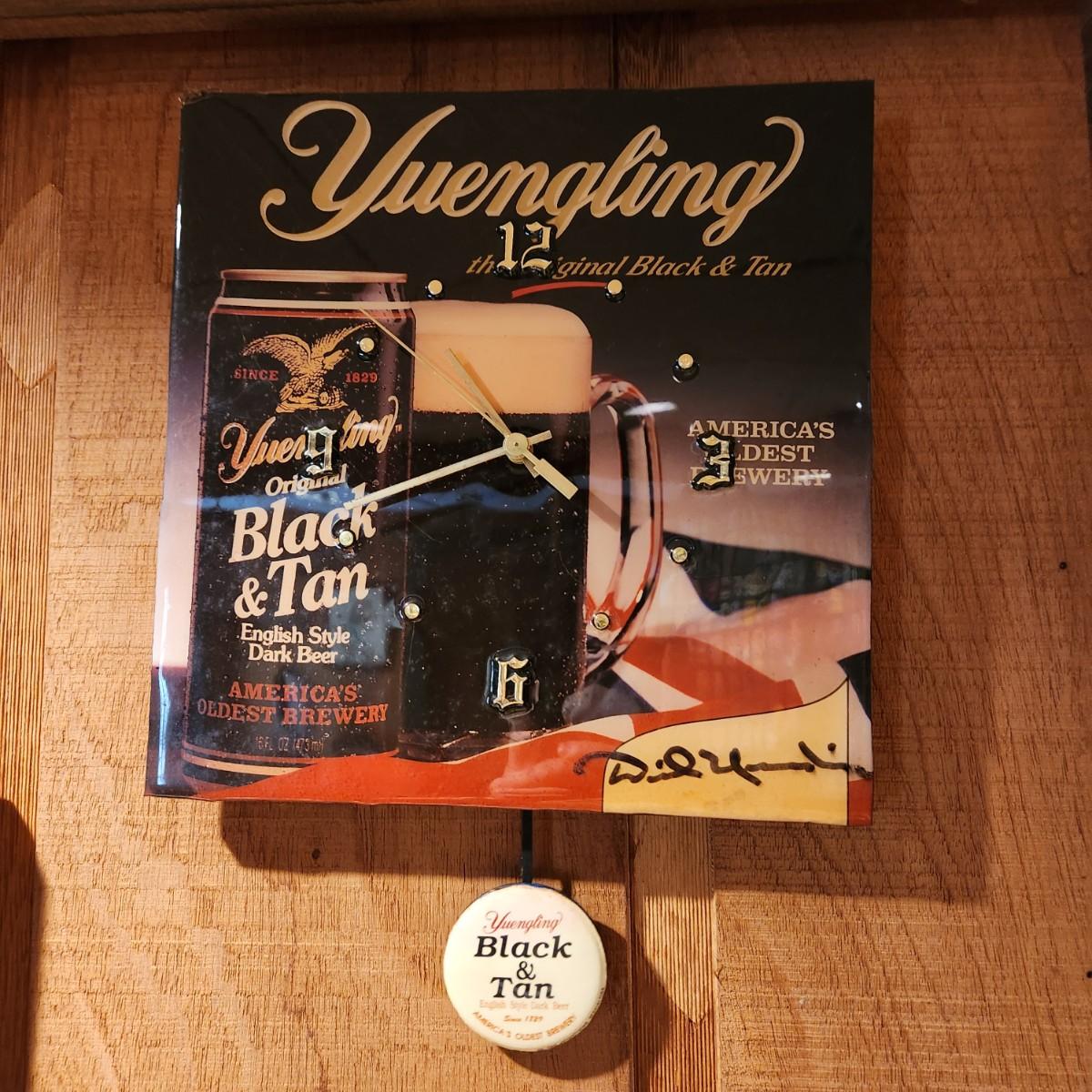 Yuengling Black & Tan Clock Signed by Dick Yuengling + Metal Tray Man Cave Decor Barware