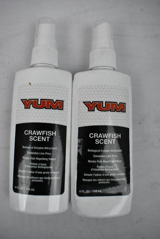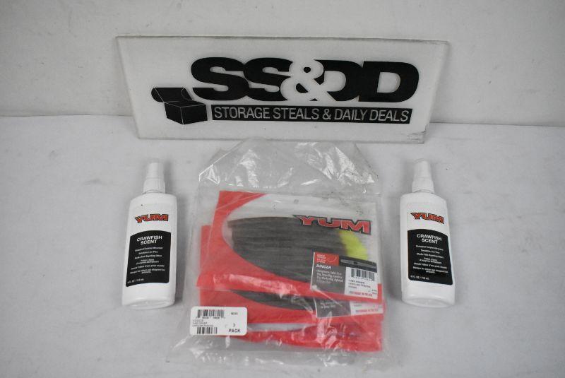 Yum Fishing Lures (3 packages) & Crawfish Scent (2 bottles) - New