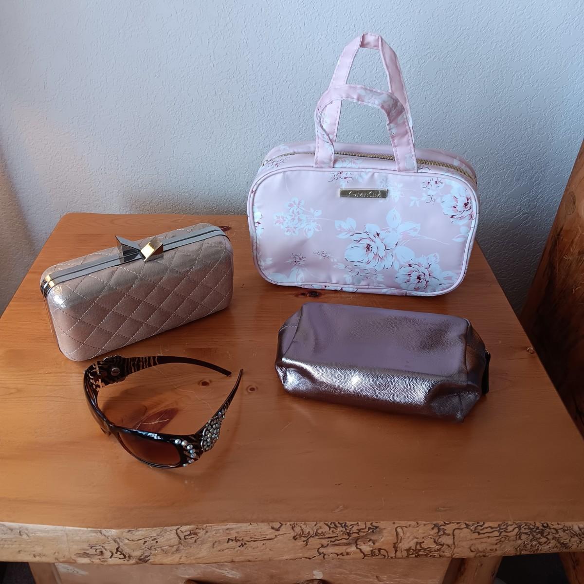 YUMI KIM TRAVEL ORGANIZER, CLUTCH OR SHOULDER PURSE, SUNGLASSES AND SMALL ZIPPERED BAG