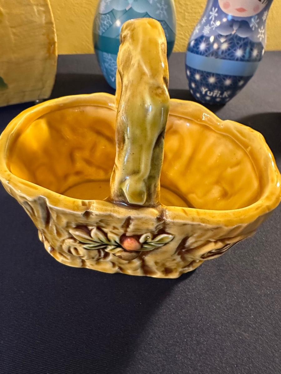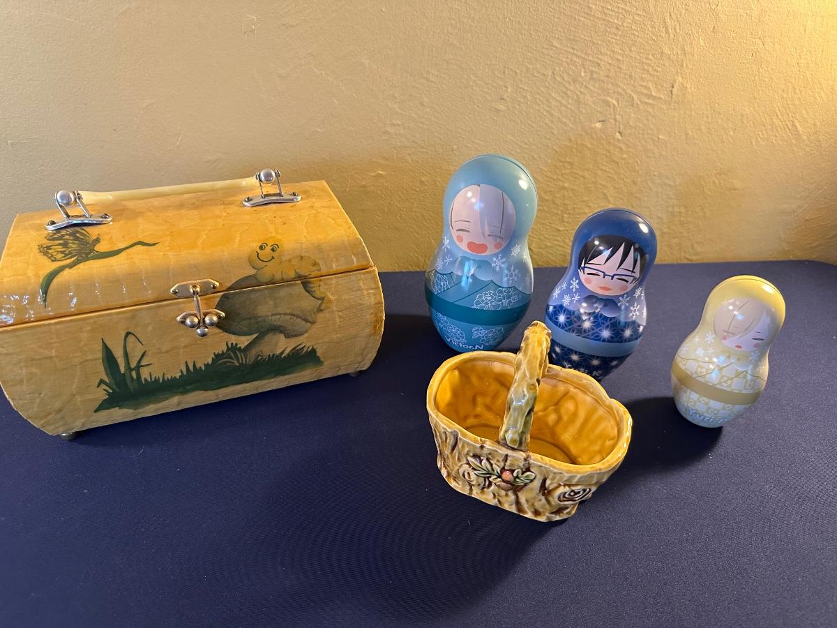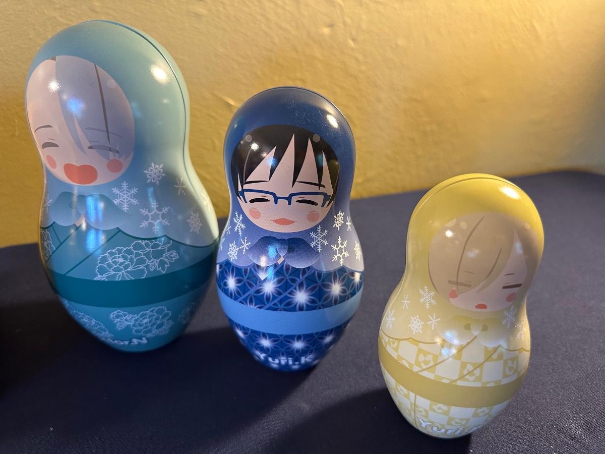 3 YURI ON ICE FIGURES, LEFTON BASKET, VINTAGE WOOD MUSHROOM PURSE