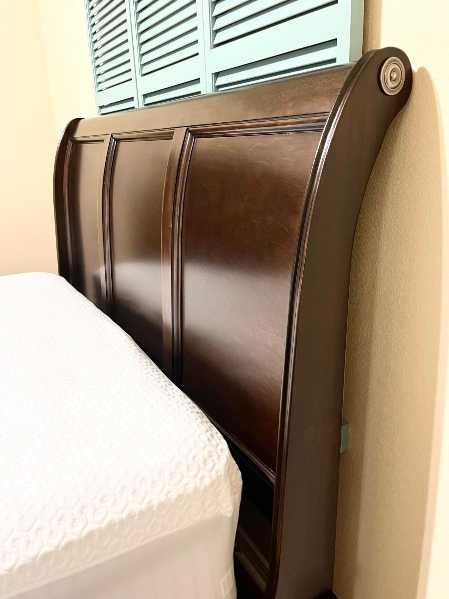 Queen Size Solid Wood Sleigh Bed ~ RESTONIC Mattress Included