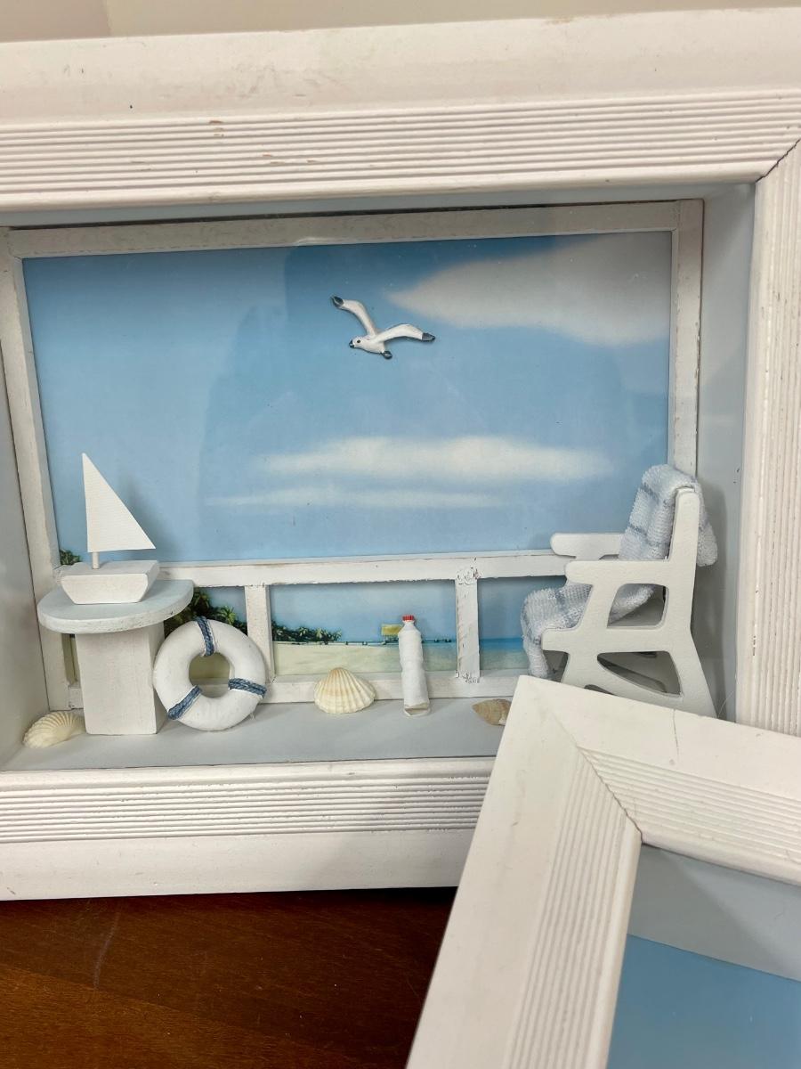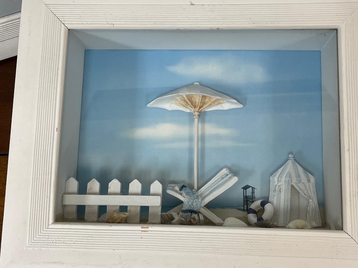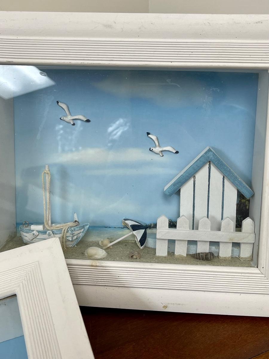 Set of Three Beach Coastal Scene Shadowbox Wall Art. In displayed condition.