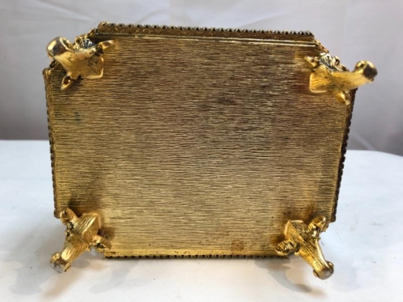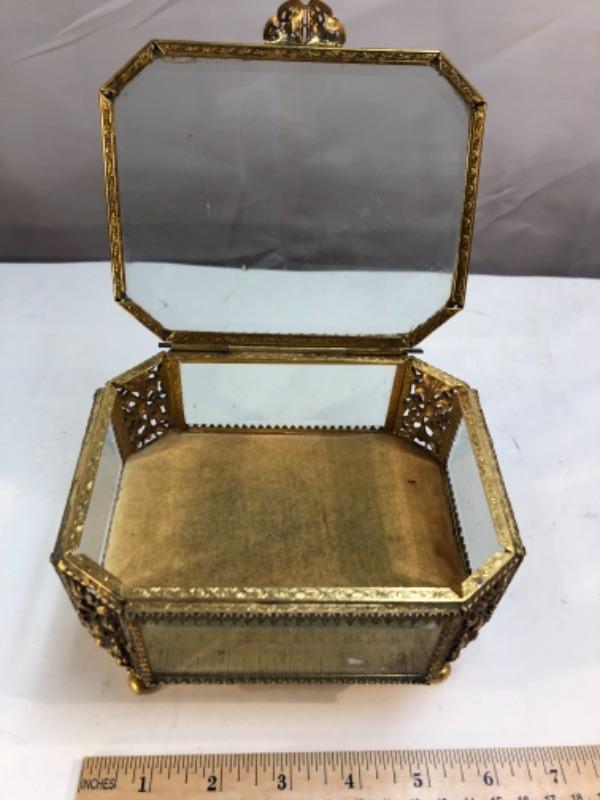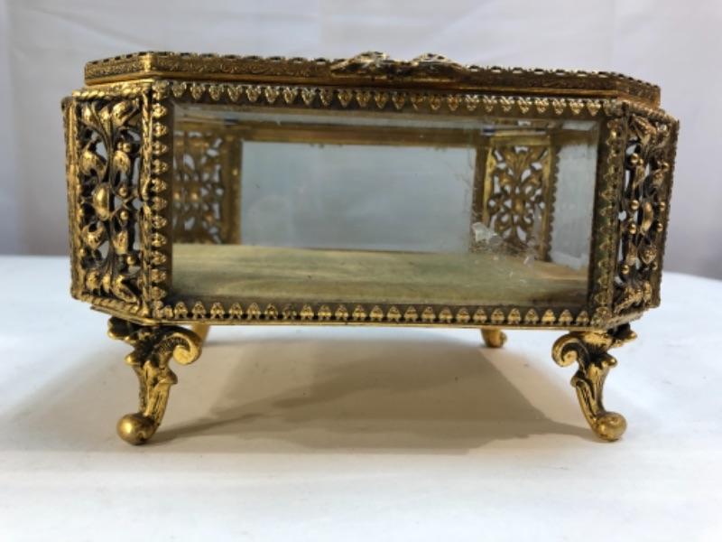Vintage Brass & Glass Ormolu Jewelry Casket Box