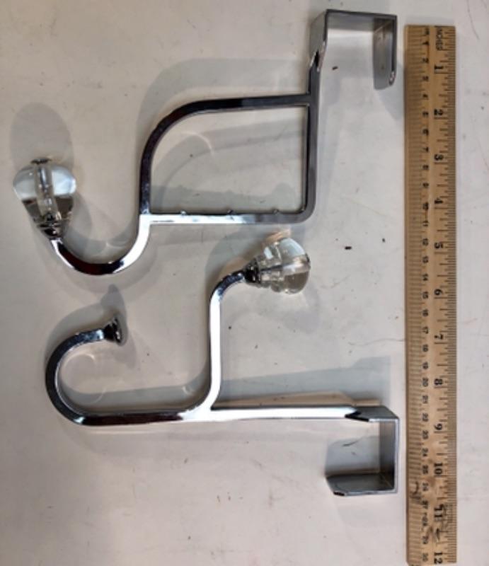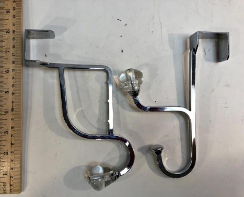 Decorative over the door hooks. Glass knob ends. One has double hooks, the other has one hook and spot to hang hangers.