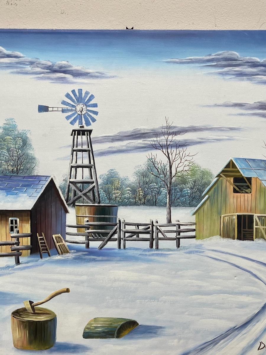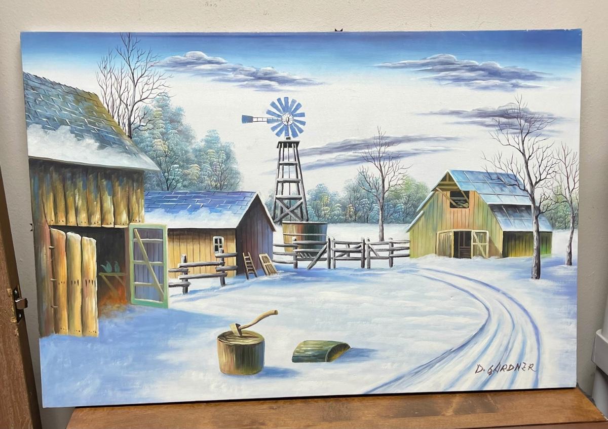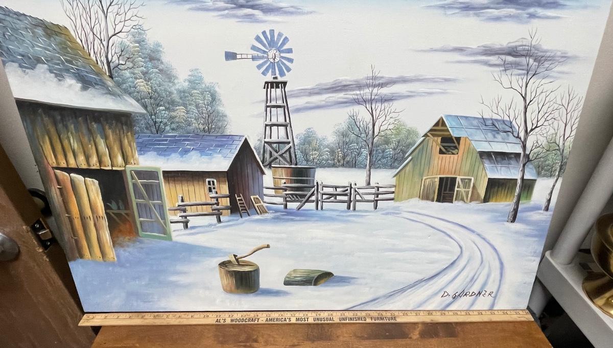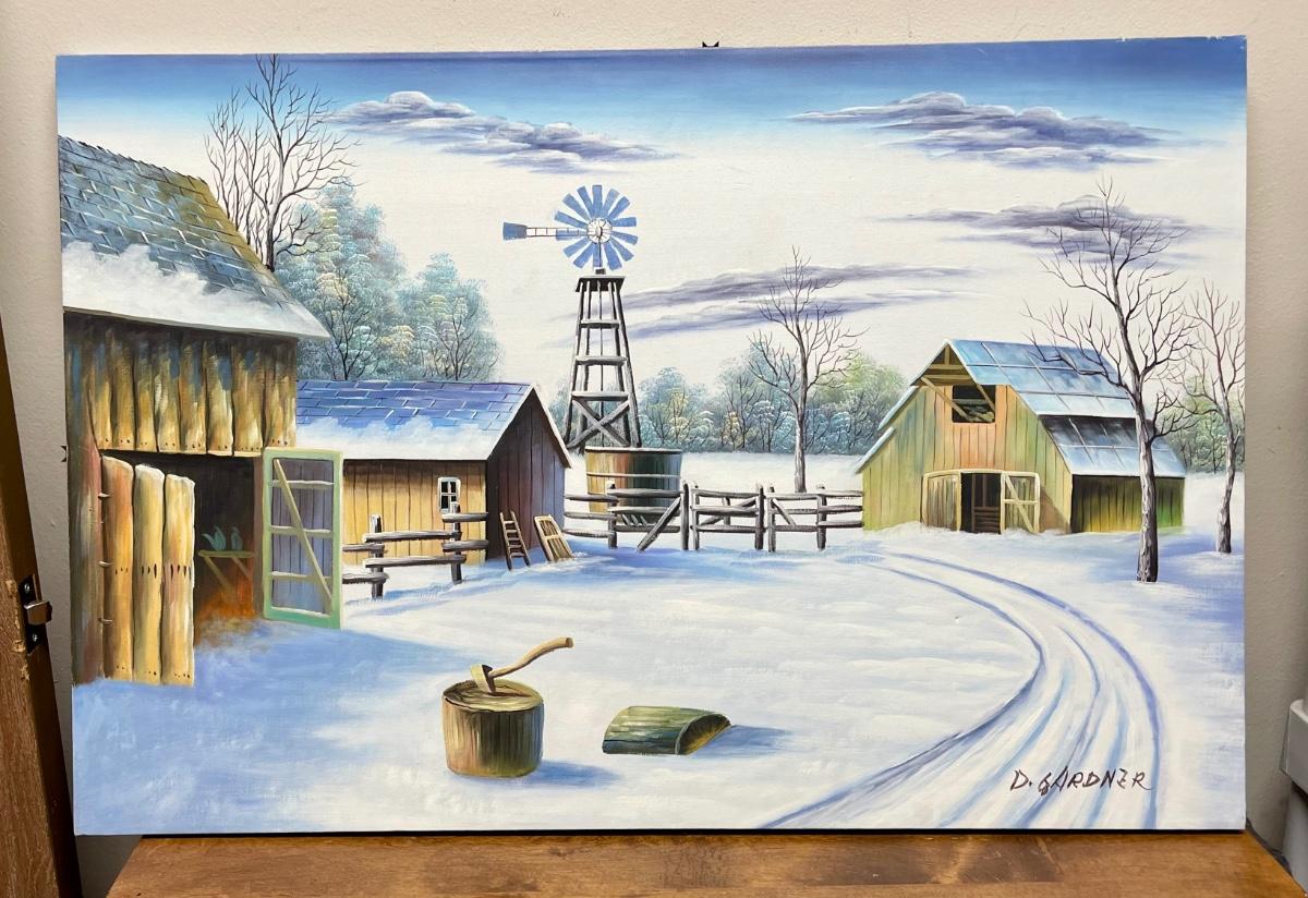 Unframed Original Oil on Canvas Farm Landscape D. Gardner