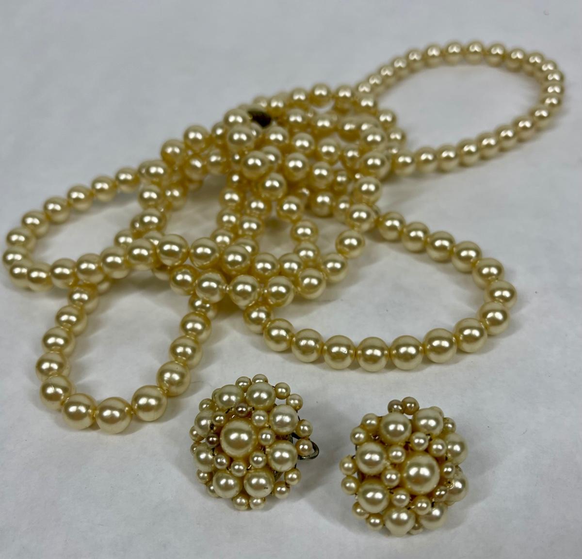 Vintage Gold Pearl Necklace and Clip-on Earrings set