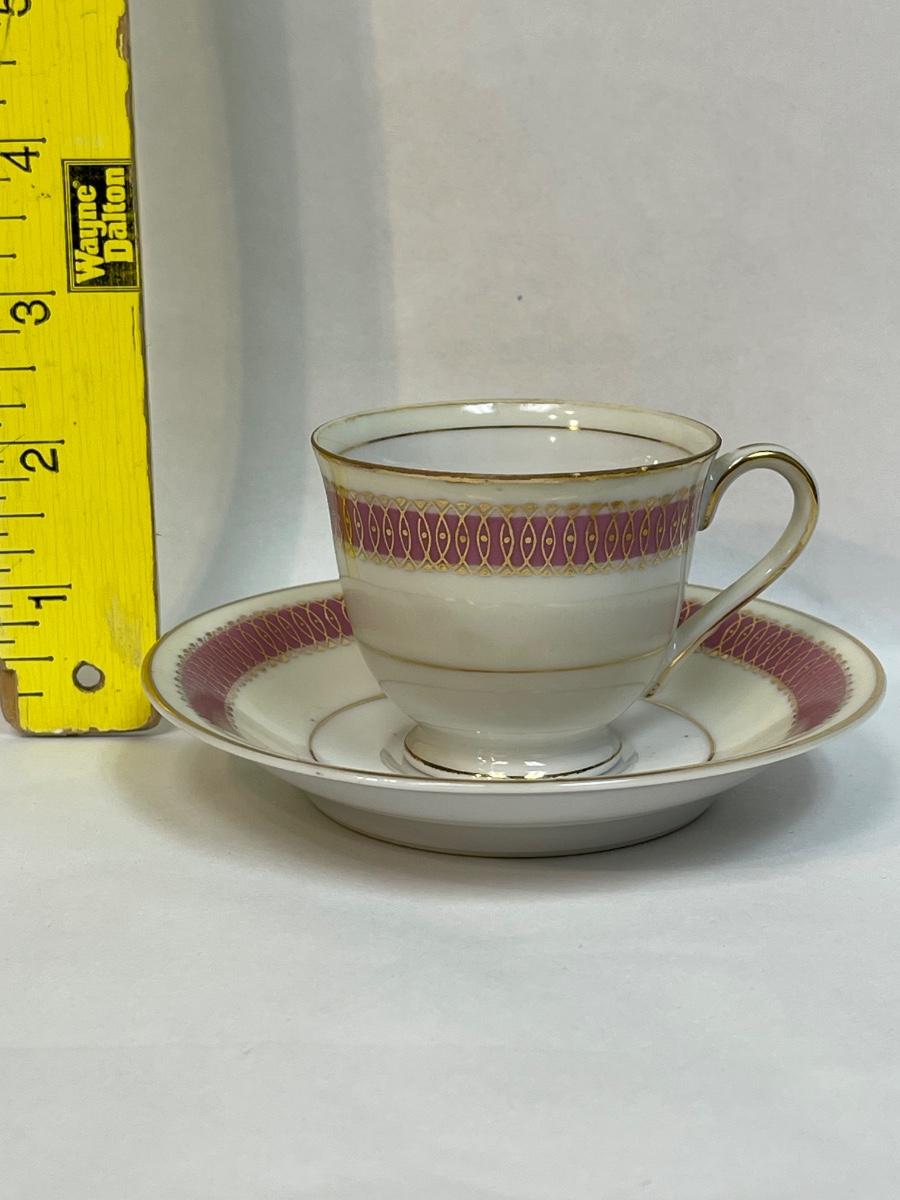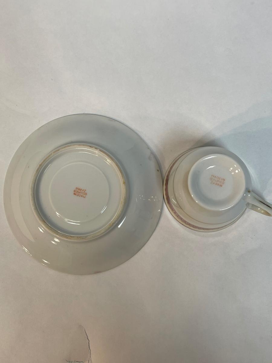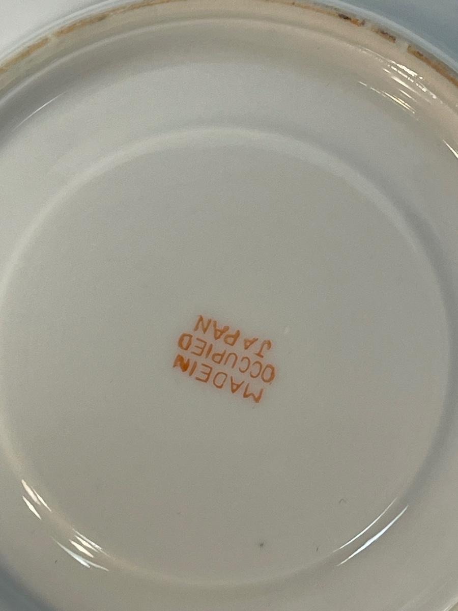 Made in Occupied Japan. Has a touch of iridescence. It is in good condition, except for 2 little nicks on the edge that we've shown in the photos.