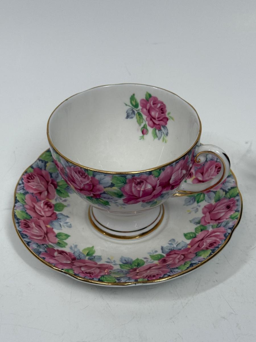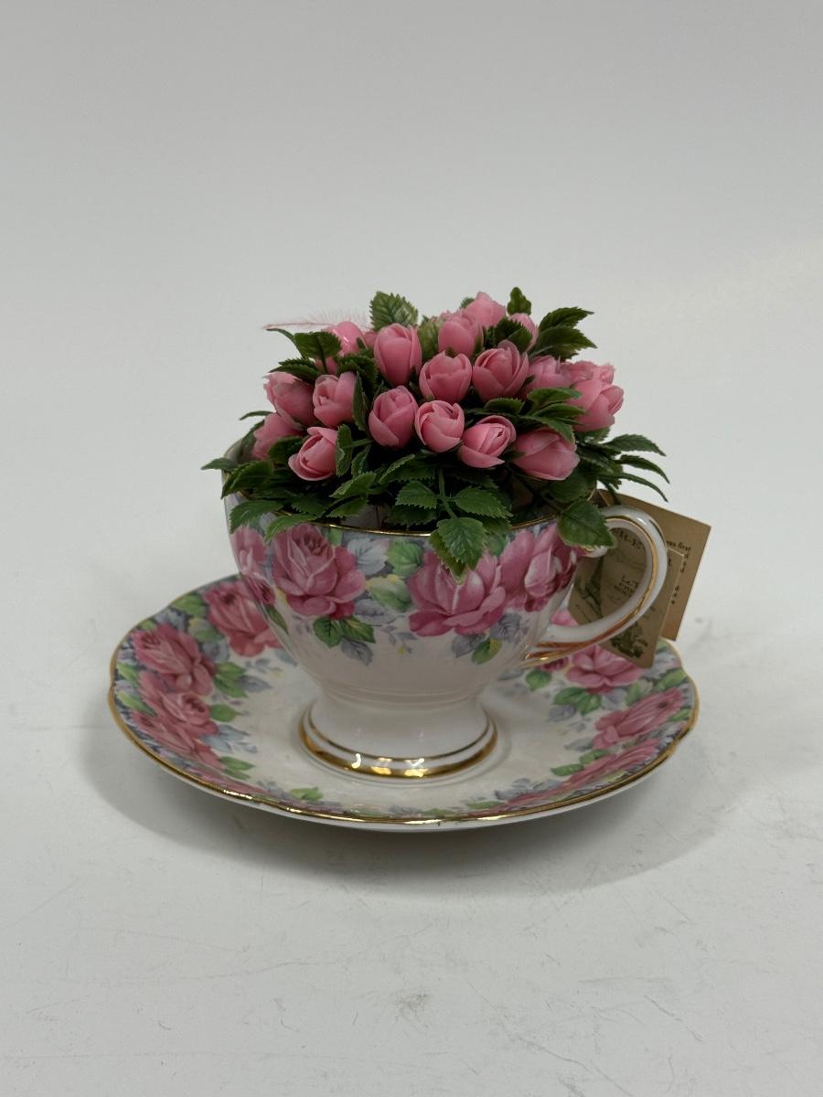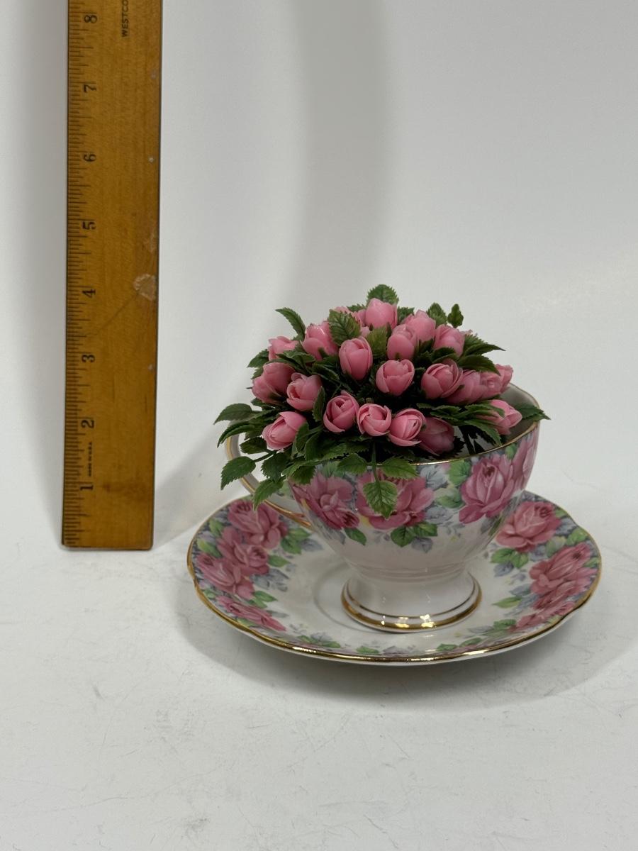 Standard Rose of Sharon Royal Tea Cup & Saucer Pink Roses with small bouquet of faux Made in England