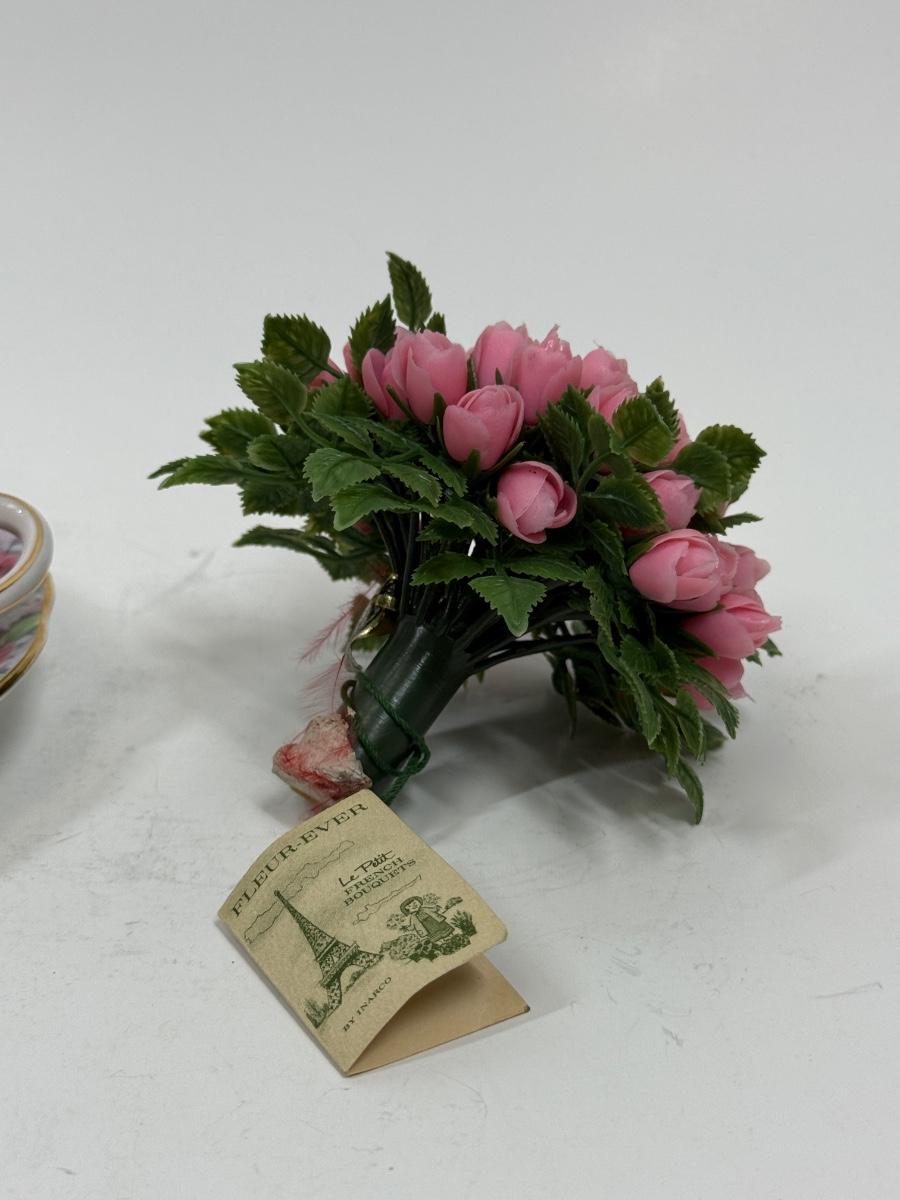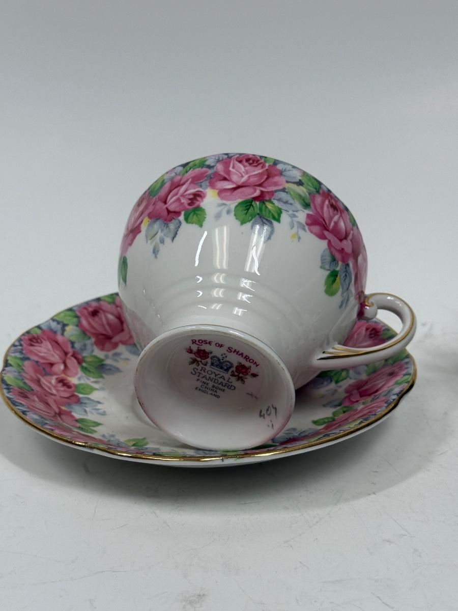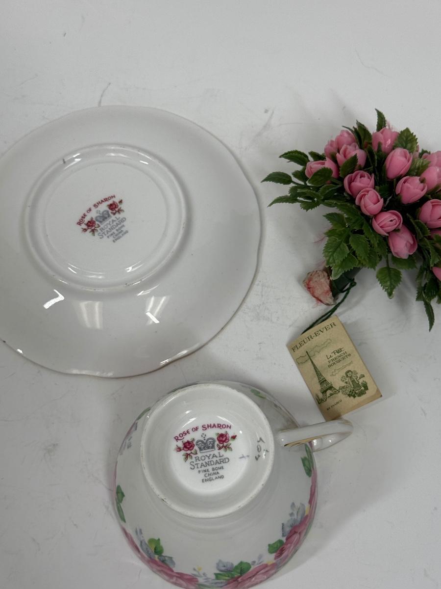 Standard Rose of Sharon Royal Tea Cup & Saucer Pink Roses with small bouquet of faux Made in England