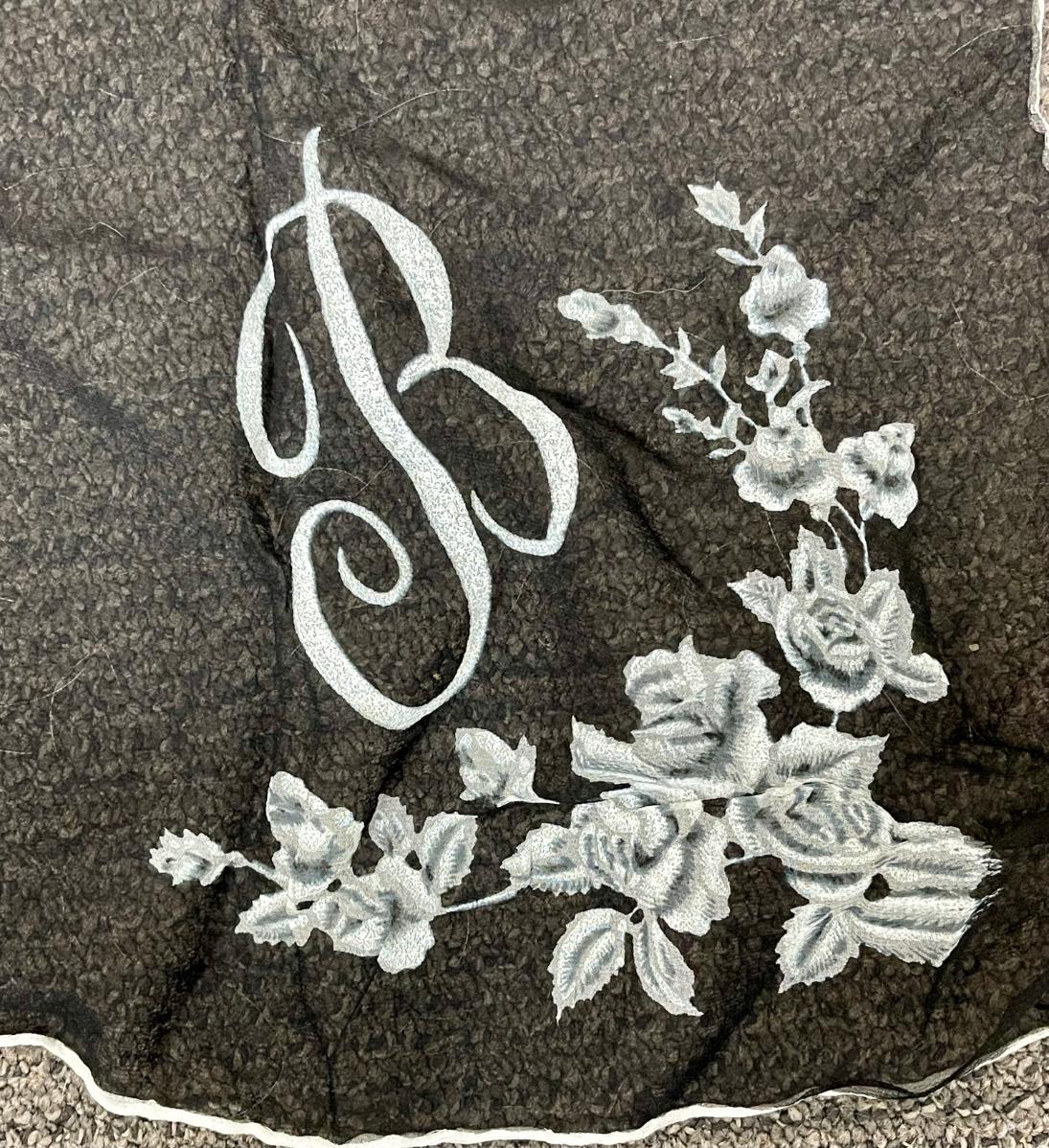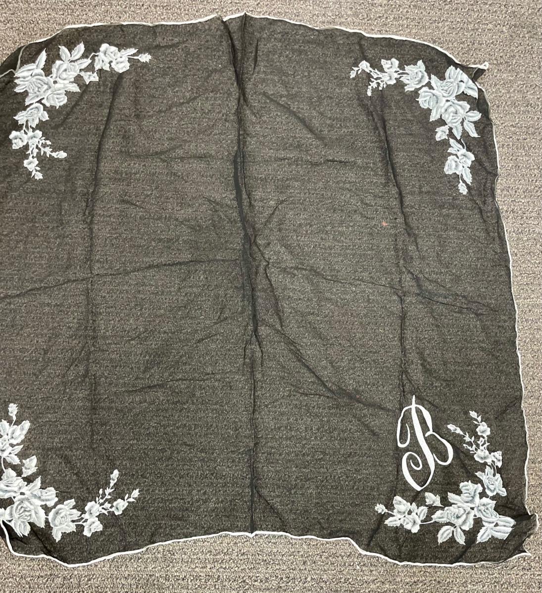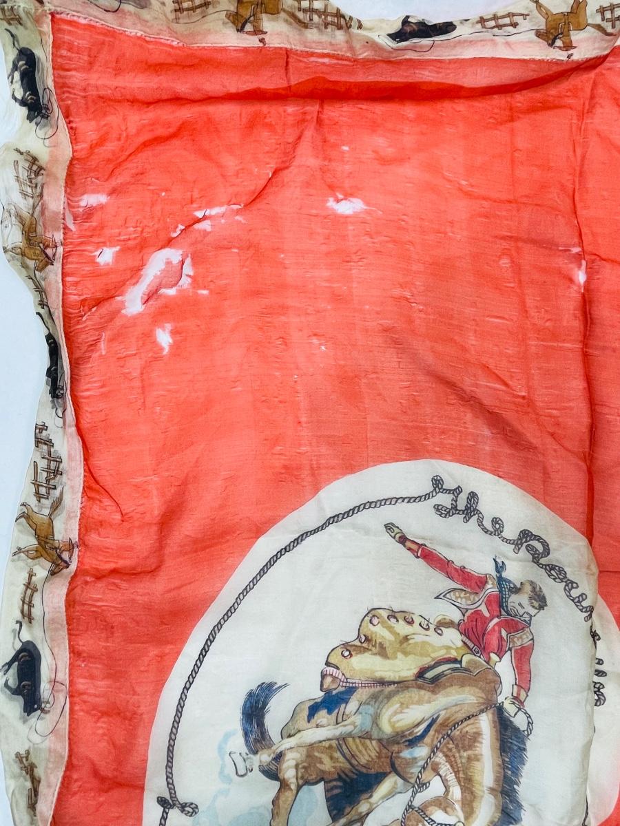 3 Vintage / Antique Scarves - Cowboy themed, "B" with Roses and Cream Colored Lacy Triangle