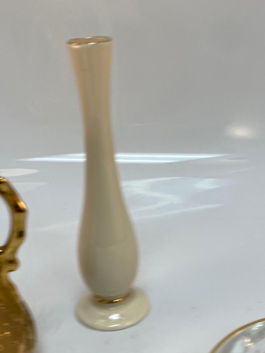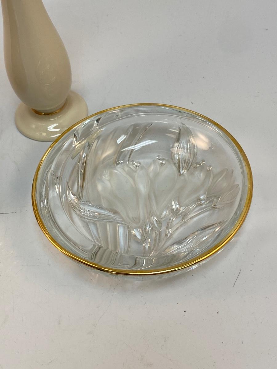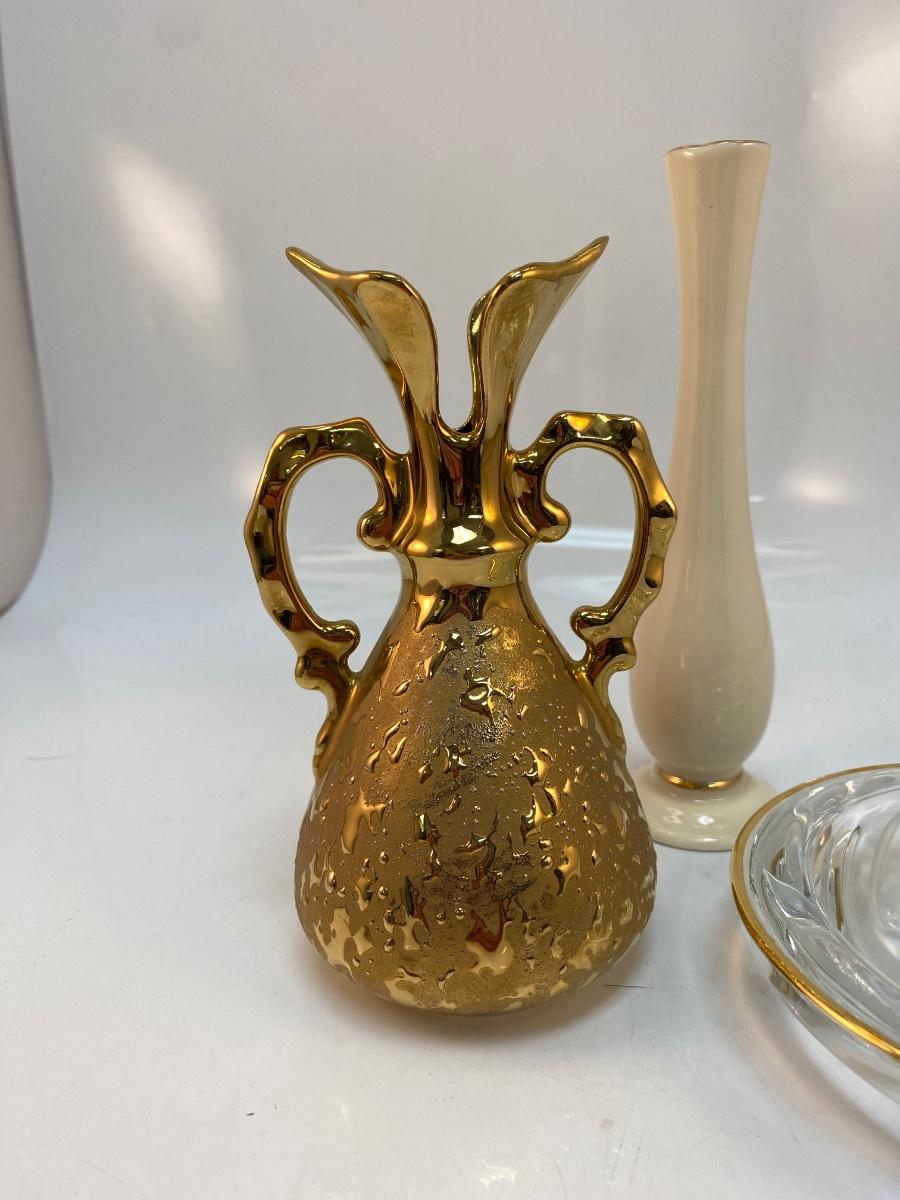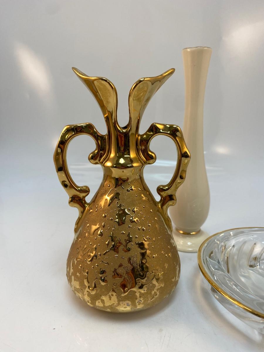 Three Piece Hollywood Regency Glamour Gold Accent Decor Lot Lenox Bel-Terr Gold Plate. All pieces are in good condition. Small sizes, perfect accent pieces.