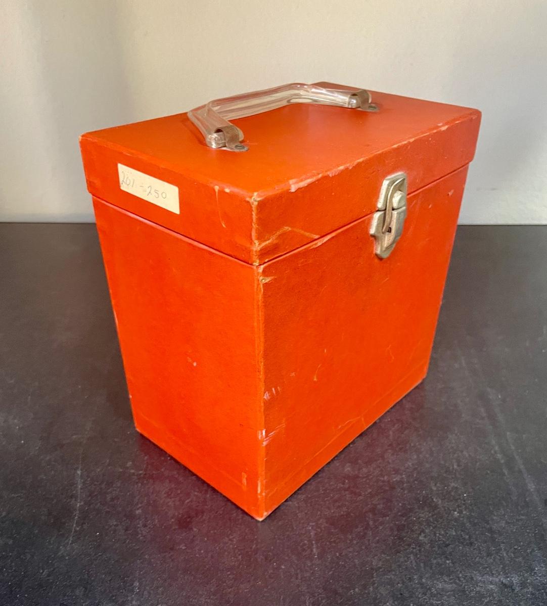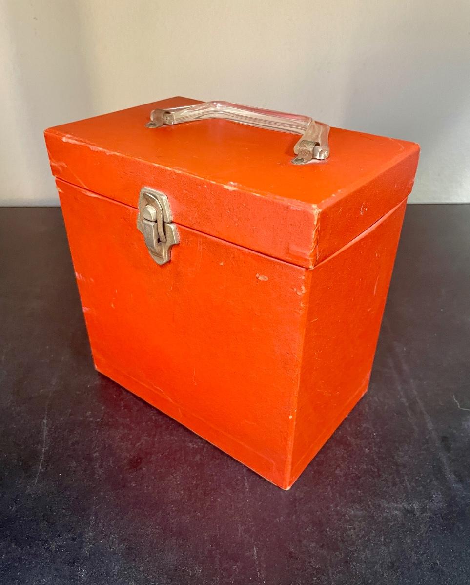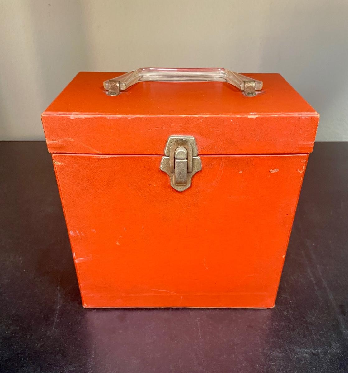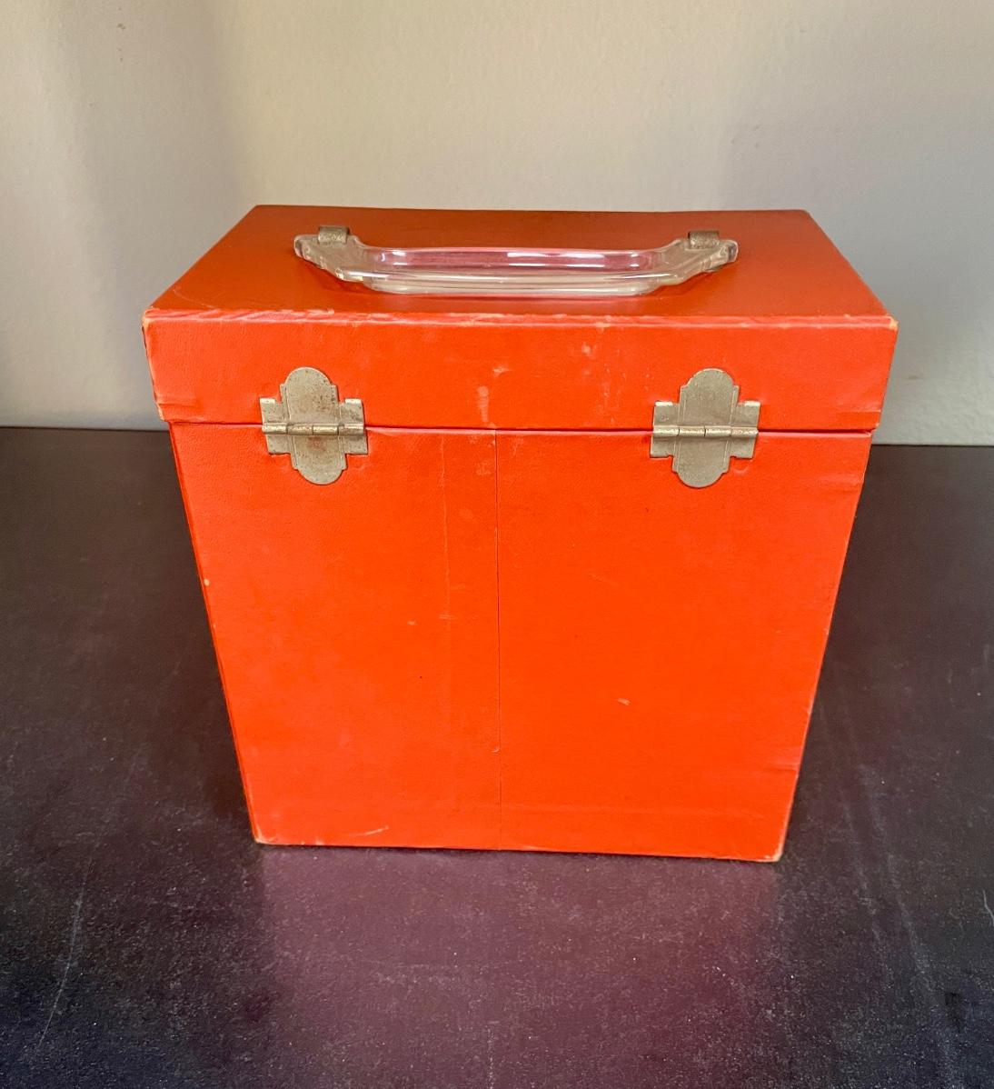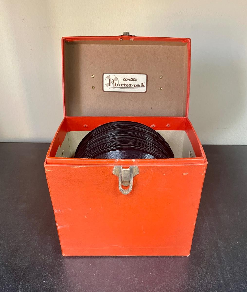 Vintage 45RPM Amfile Platter-Pak Red Record Storage Carry Case with 43 Records