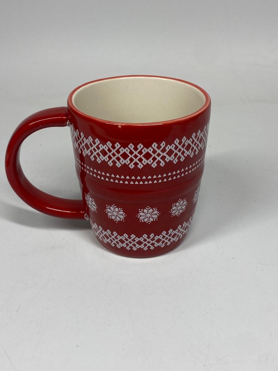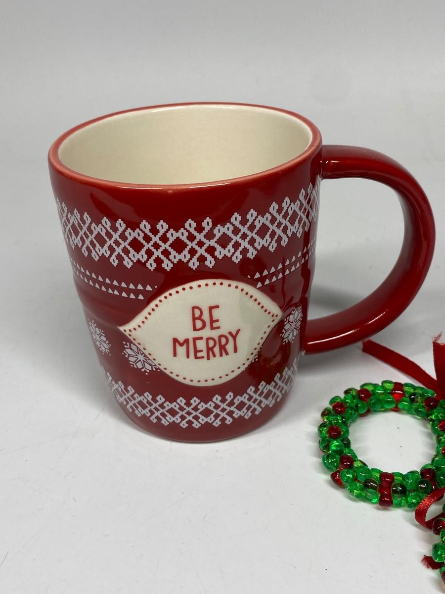 Hallmark Red & White Be Merry Holiday Christmas Coffee Cocoa Tea Mug Cup with Beaded Wreath Ornaments