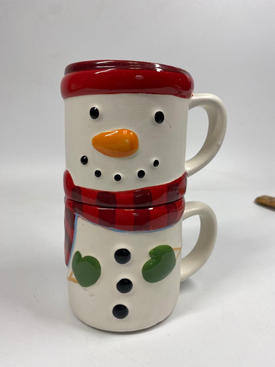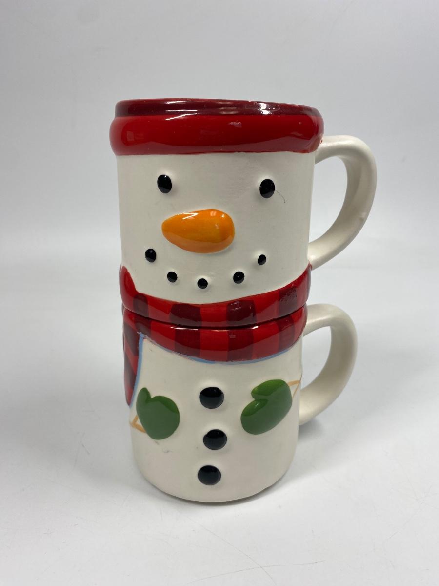 Hallmark Stacking Snowman Christmas Holiday Coffee Cocoa Tea Cup Mug Set