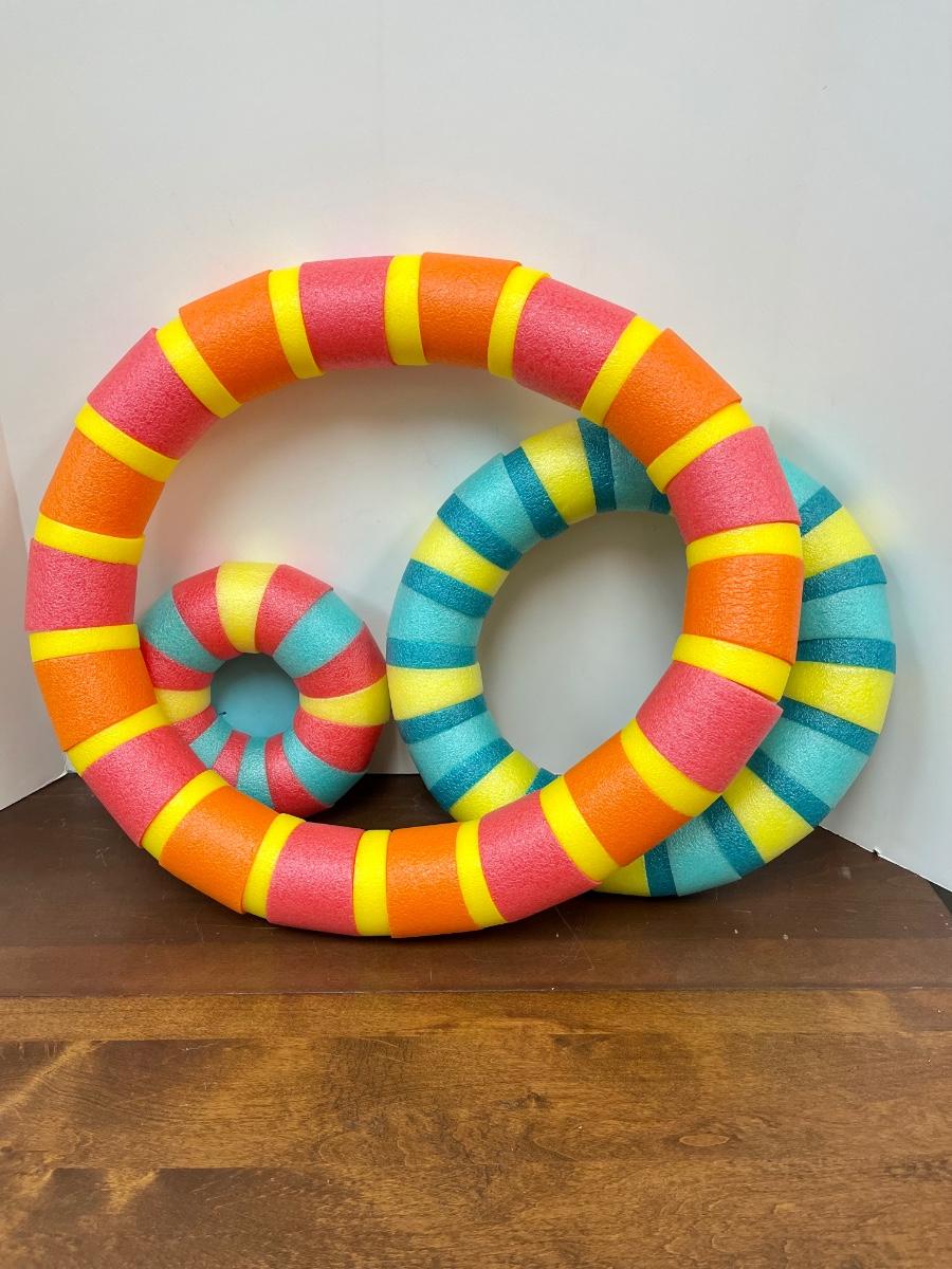 Colorful Striped Pool Noodle Foam Circle Floating Rings. Good condition.
