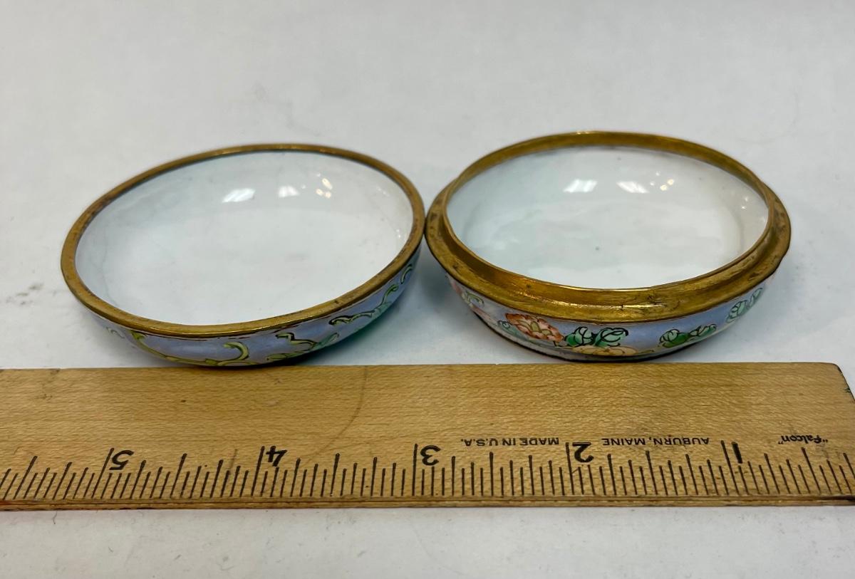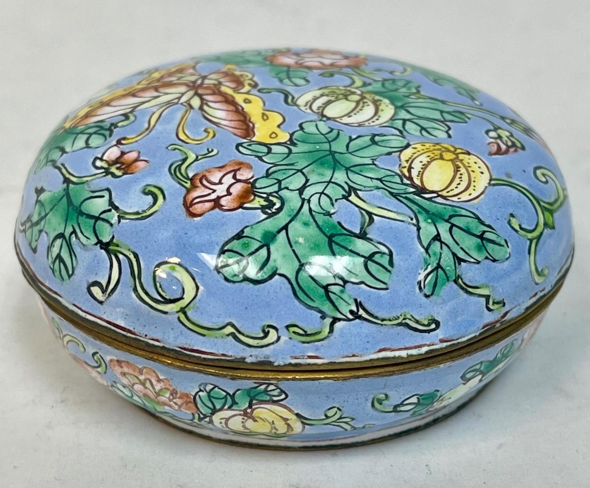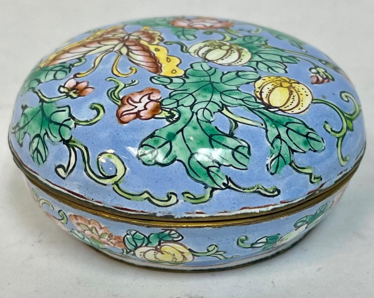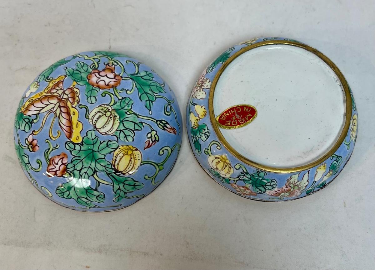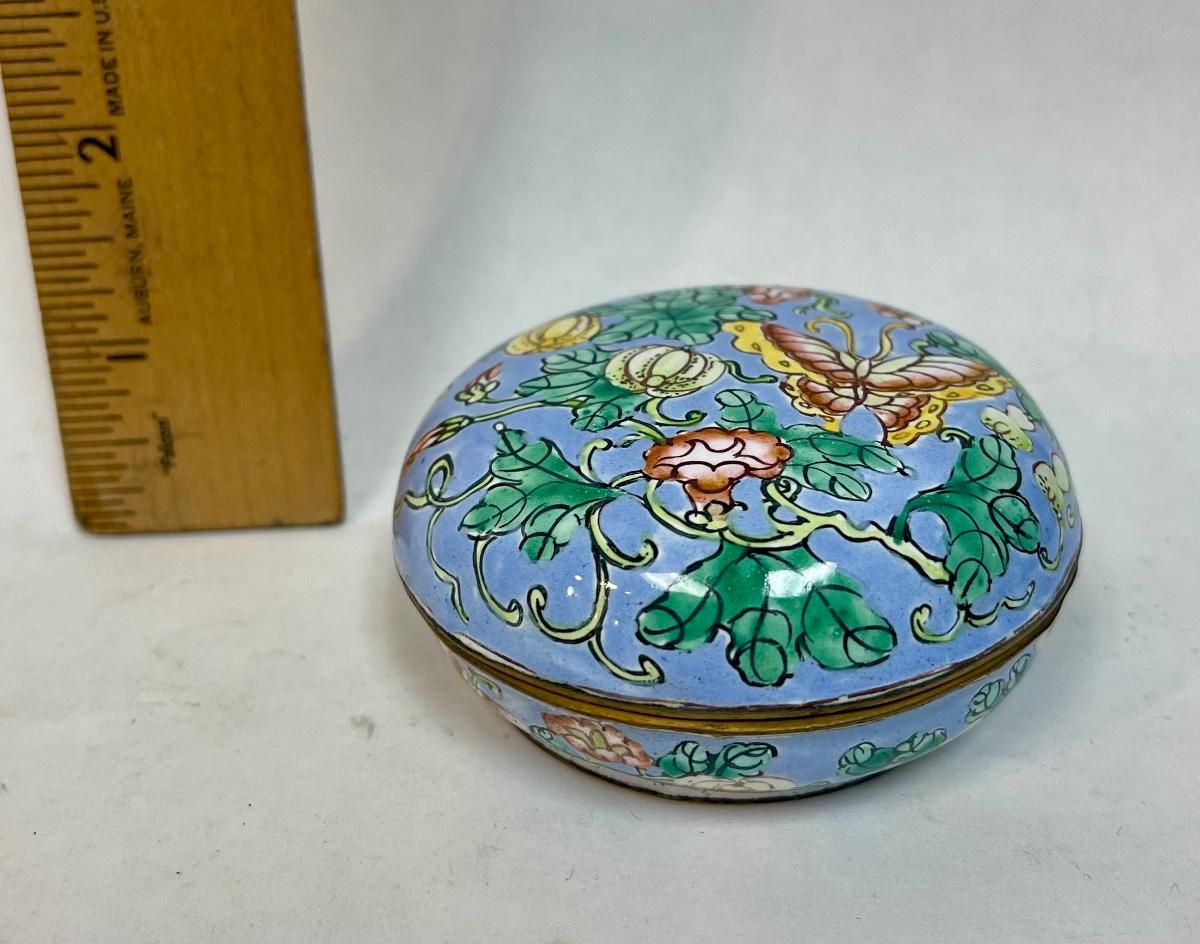 Trinket Box, Porcelain Floral and Butterfly Pattern on Blue Background