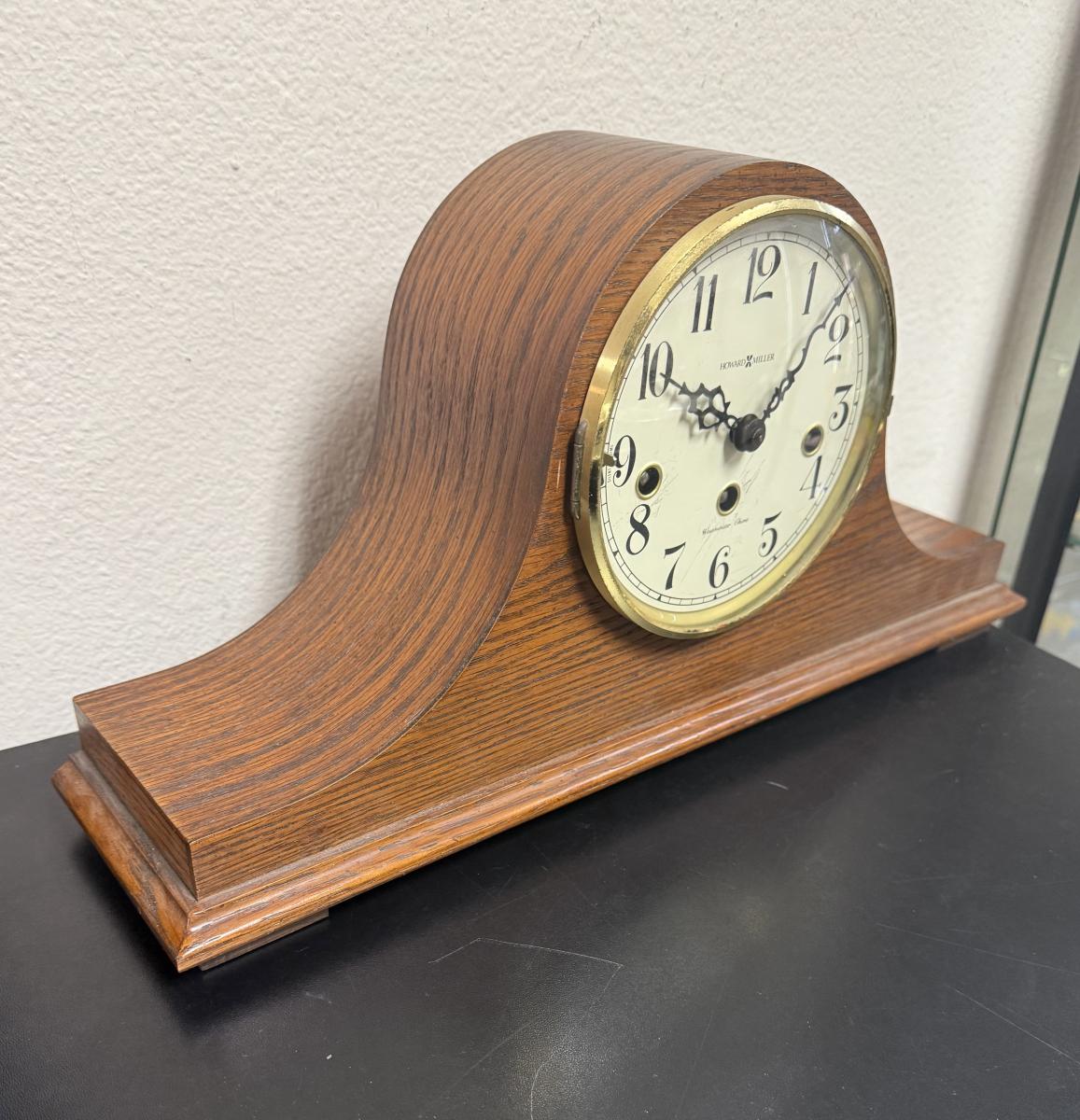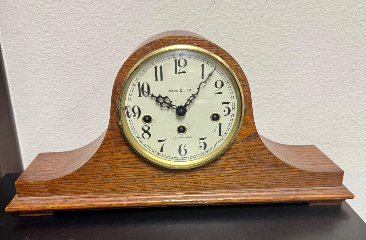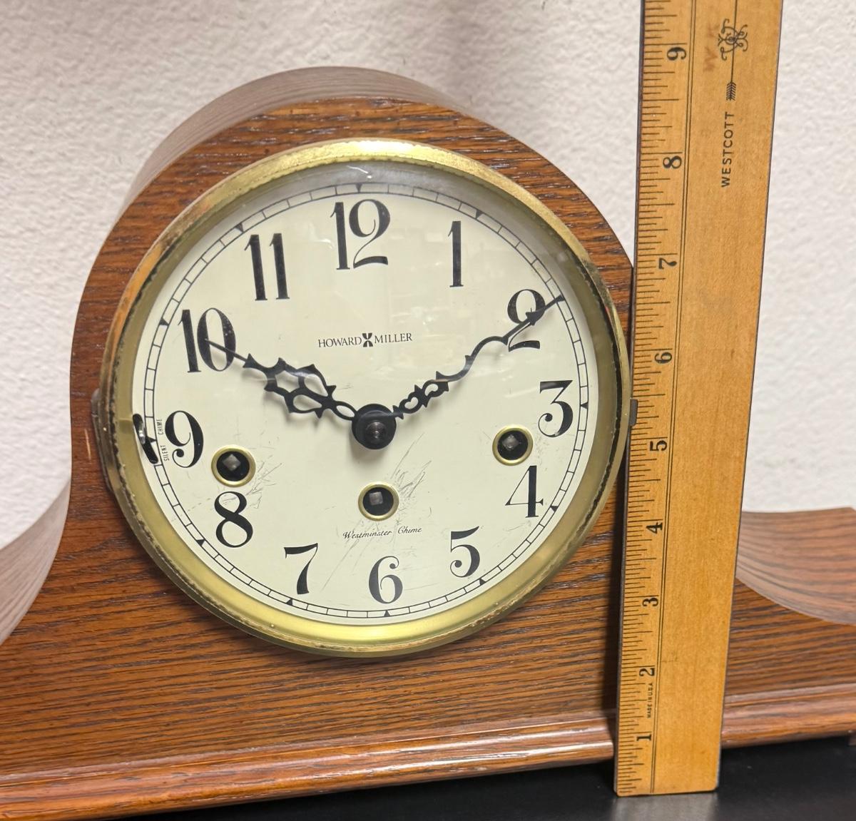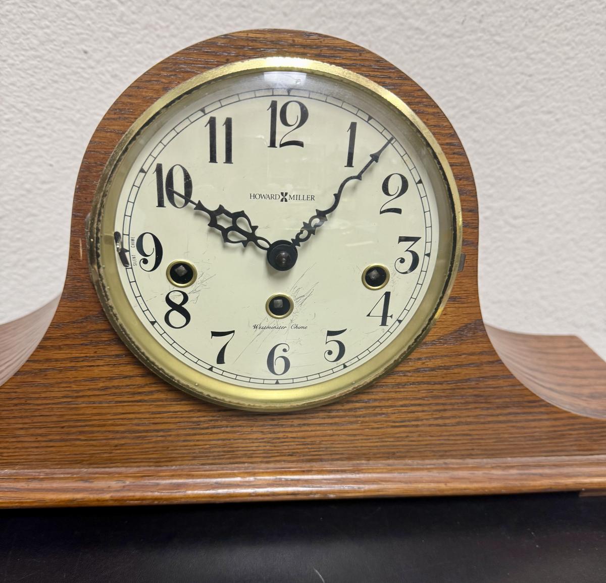 Wood case, includes 2 keys. Model 612-618. Clock runs as expected, but chimes don't play. Mechanism may need some adjustment, seems like the chime feature is fully wound but the on-off switch does not seem to work as expected.