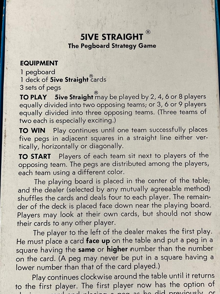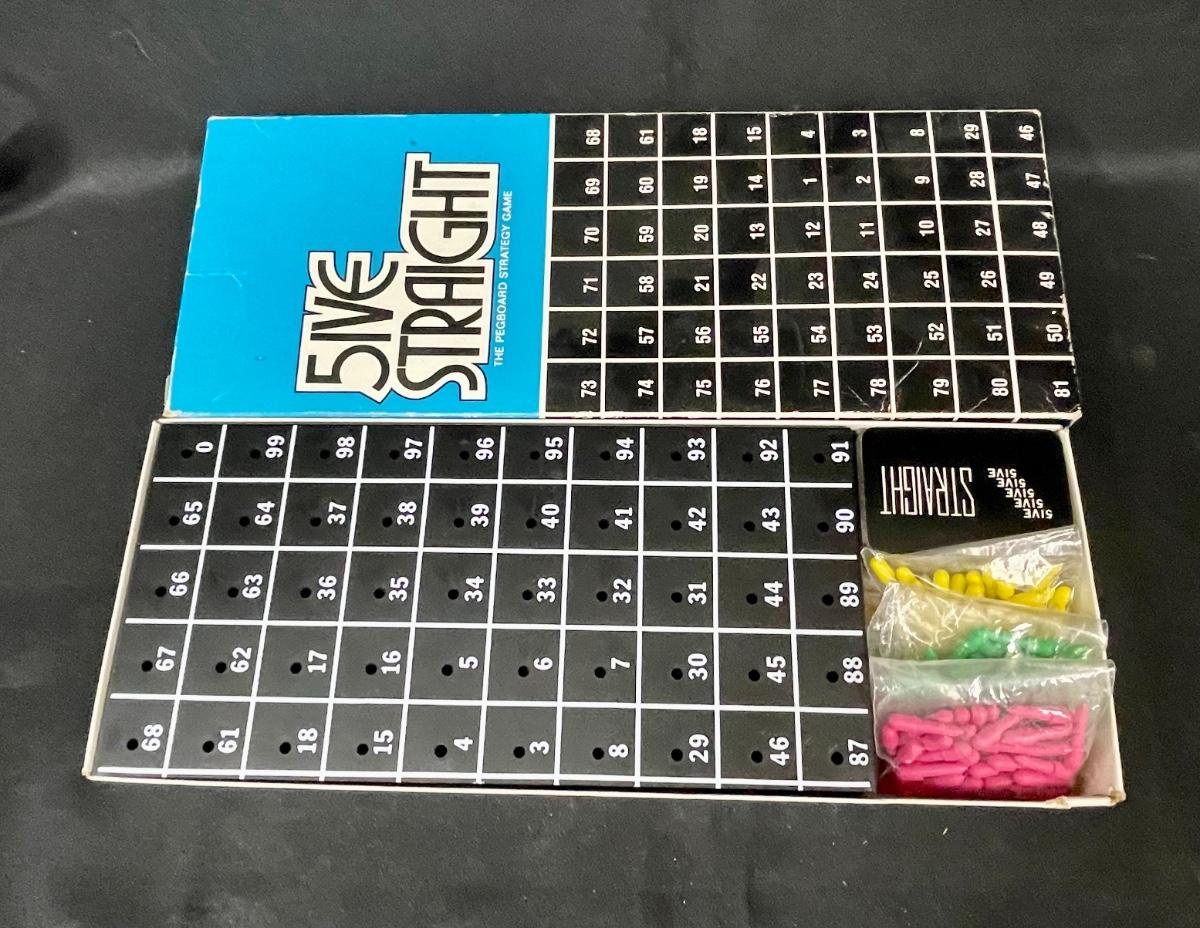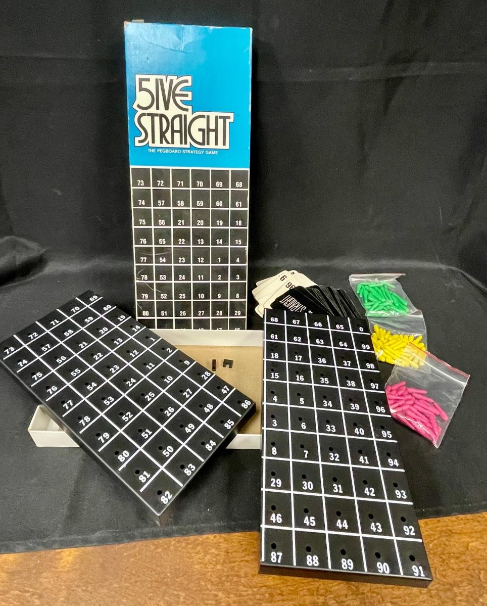 5ive Stright Peg Board Strategy Game. In good used condition, looks complete.